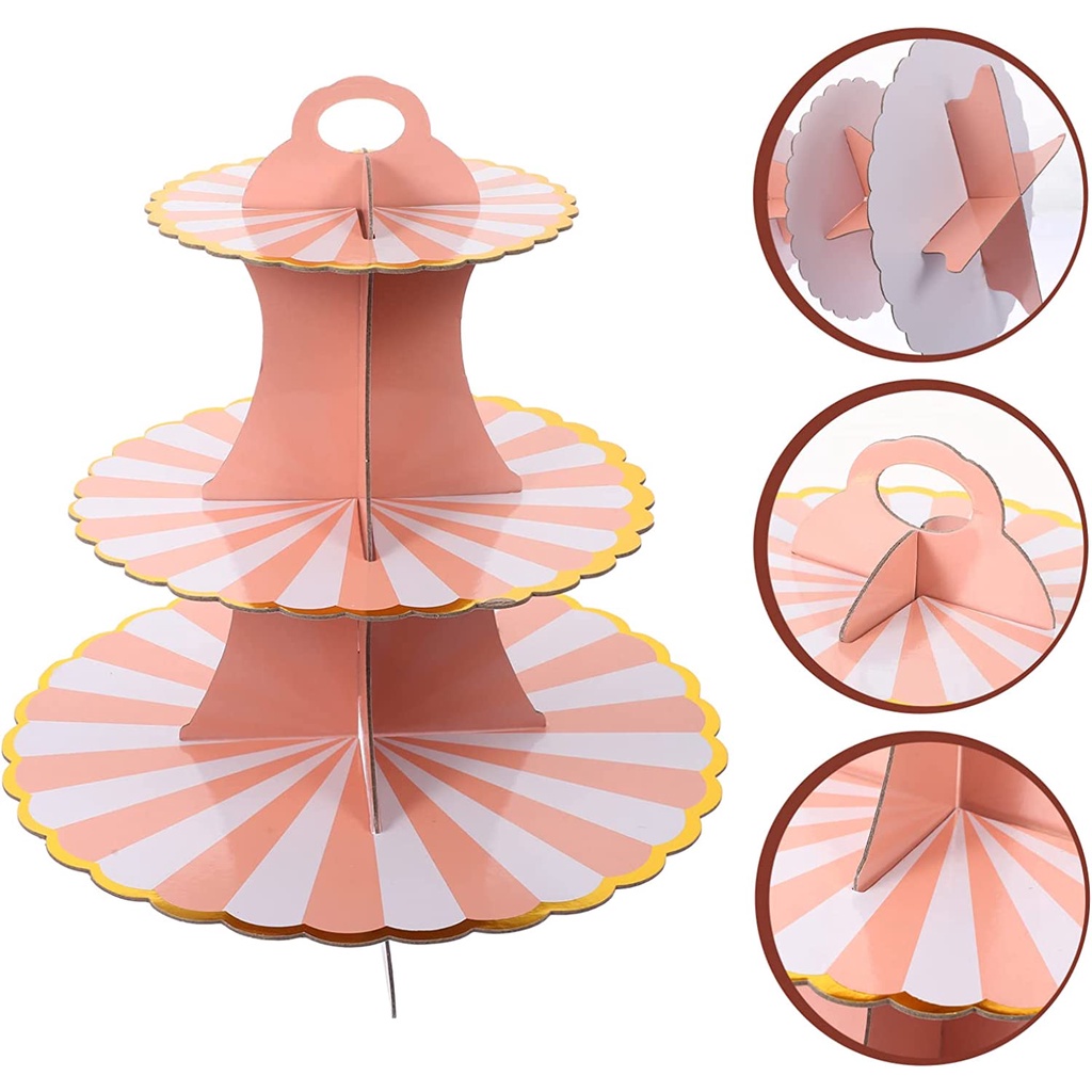 3-Tier Round Cardboard Cupcake Stand Pastry Serving Platter Party Dessert Stand Dessert Tower Party Supplies Display