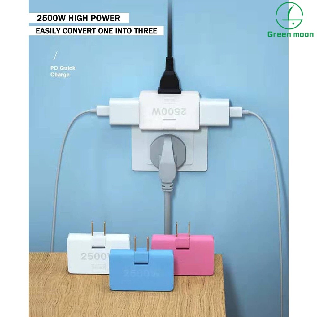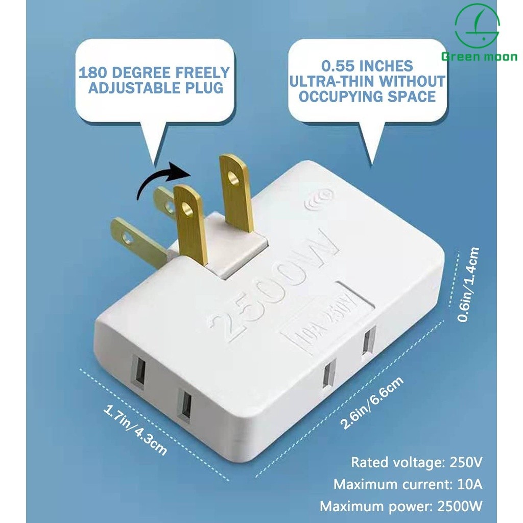 3 in 1 Extension Plug Adapter Foldable, 2-Prong Swivel Ac Adapter,Mini Rotatable Socket Converter