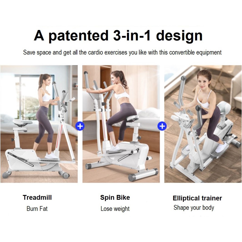 3 in 1 Magnetic Elliptical Machine Trainer Stepper Machine with 16 Level Resistance Sport Exercise Home