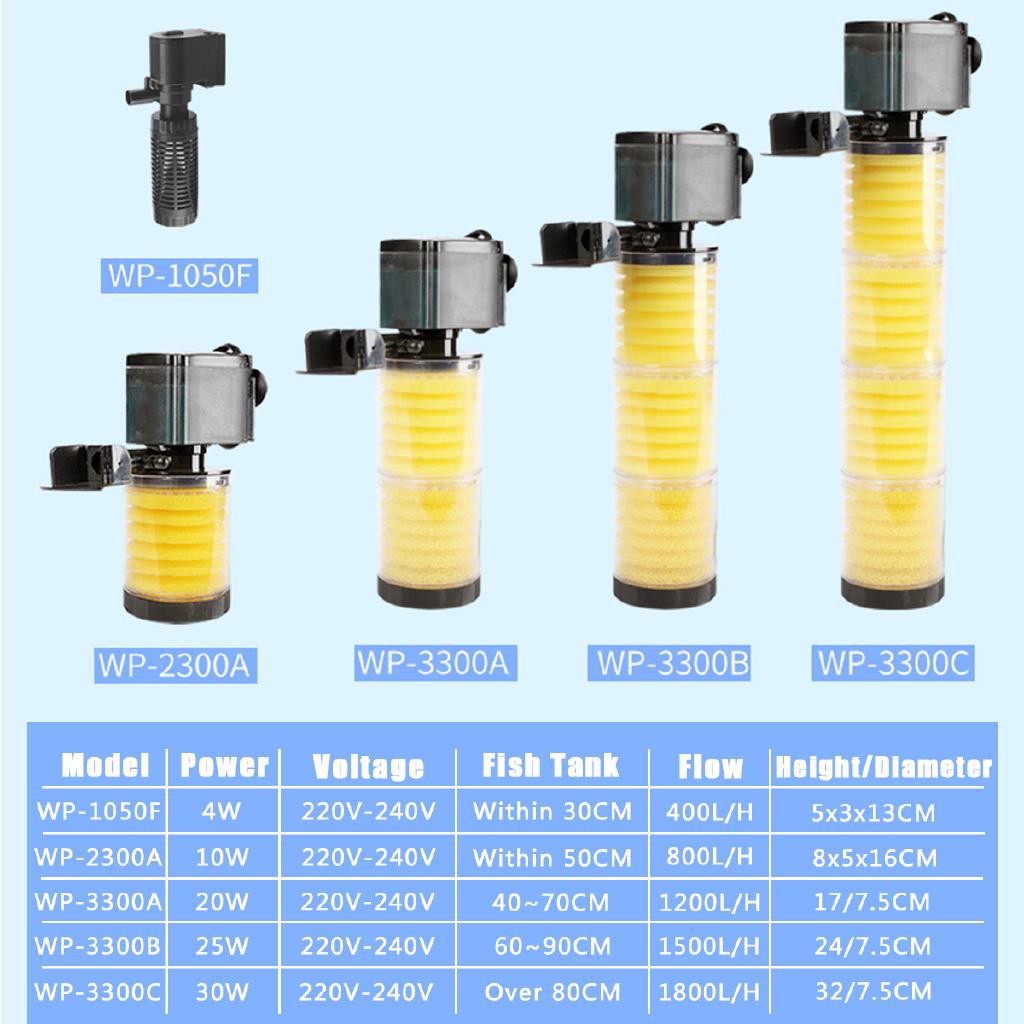 3 in1 Aquarium Internal Filter Pump With Sponge for fish tank