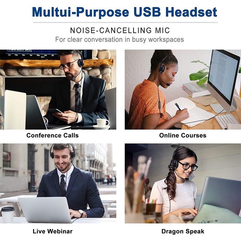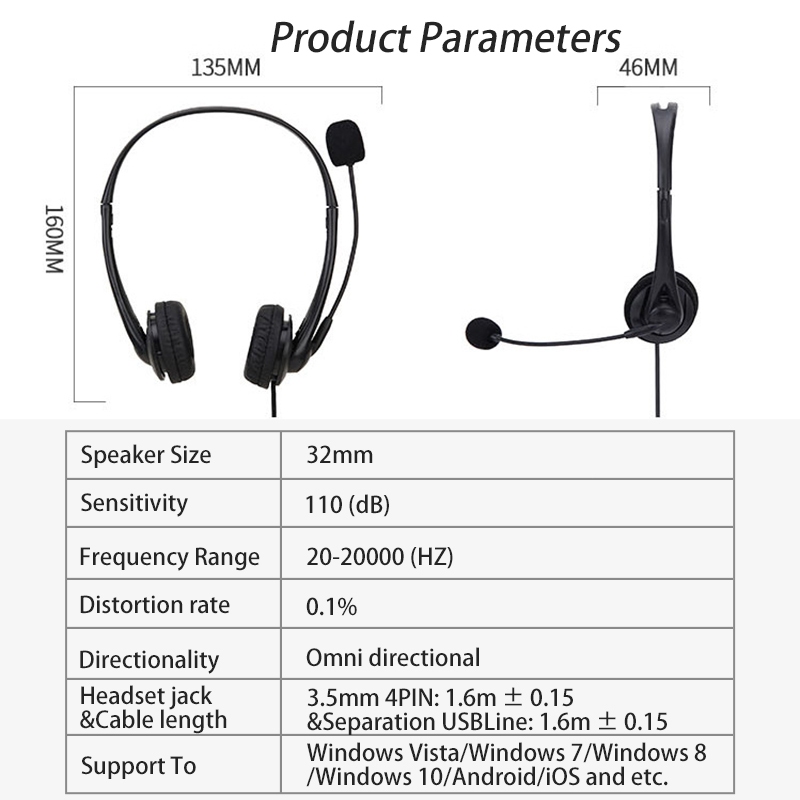 3.5mm&USB 2 IN 1 Stereo Headset With Noise-Cancelling Mic Wired Headphones