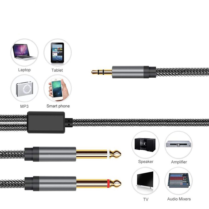 3.5mm to Dual 6.35mm Audio Cable Stereo Aux Y Splitter for Phone Laptop Tablet MP3 to Speaker Computer Mixer
