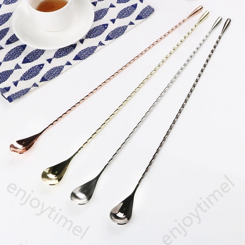 30/40cm Stainless Steel Stir Bar Spoon Mixing Ounces Cocktail Spoon Spiral Pattern Bartender Tools Teadrop Spoon Bar Tool