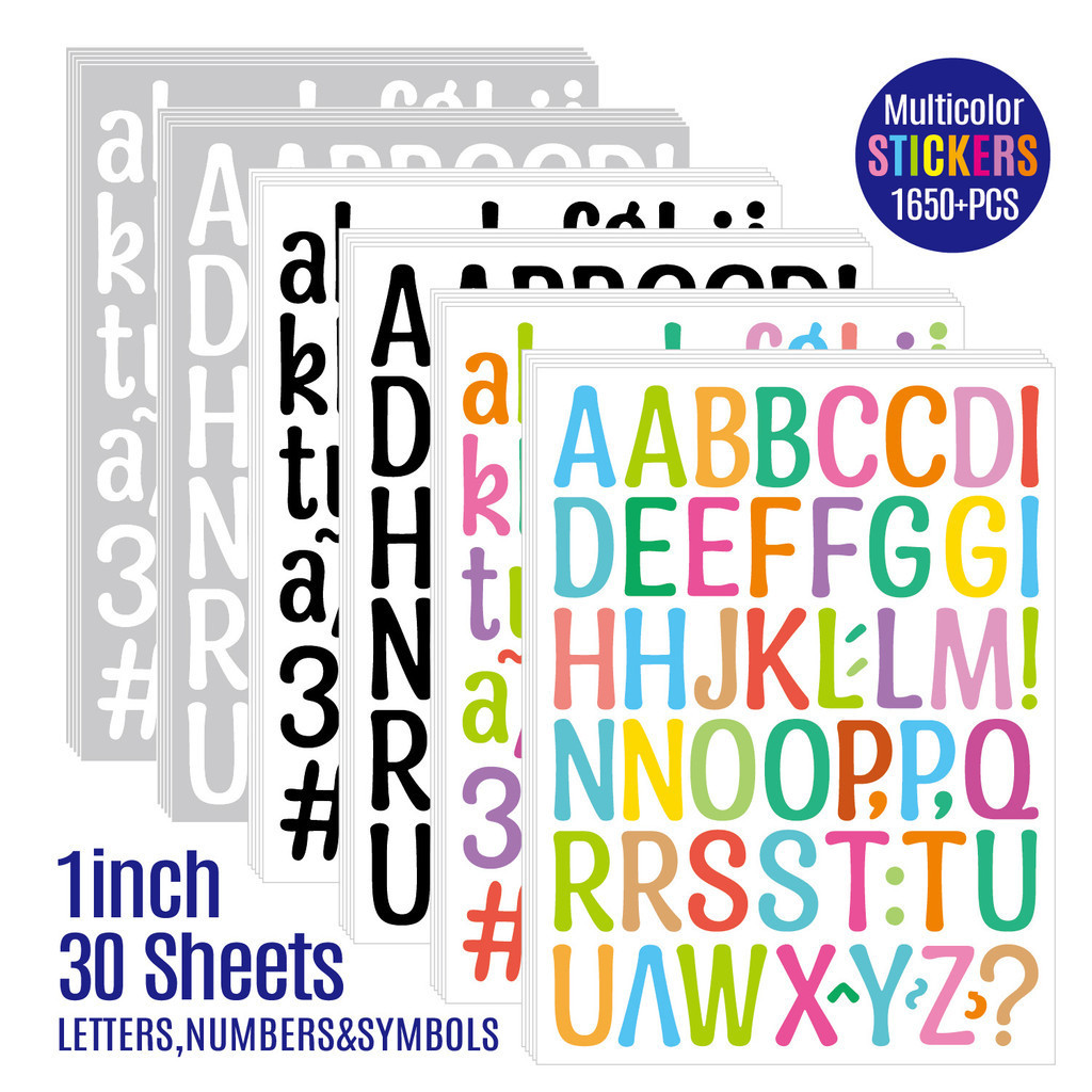 30 Sheets/1600+pcs 1 Inch Artistic Letters, Numbers & Symbols Waterproof PVC Stickers (2)