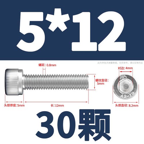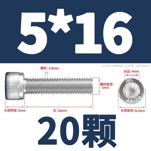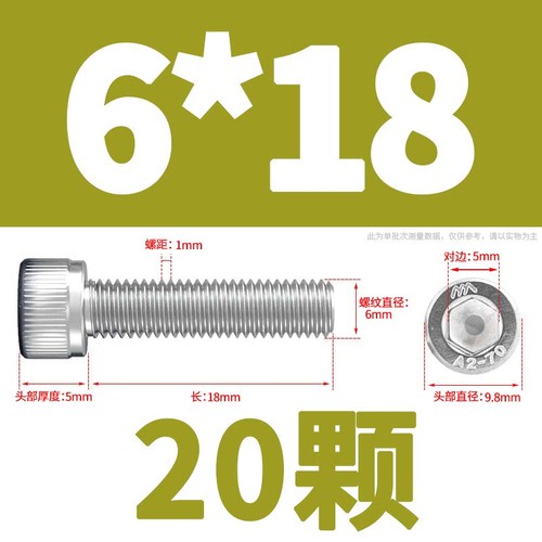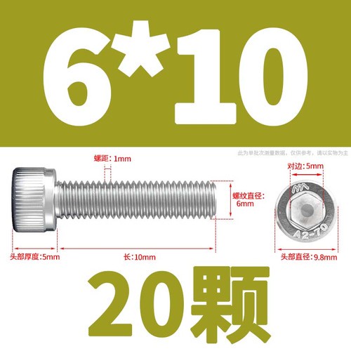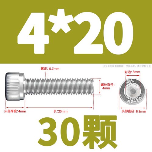 304 Stainless Steel Cylindrical Head Bolt Hexagon Socket Screw M4/M5/M6