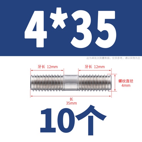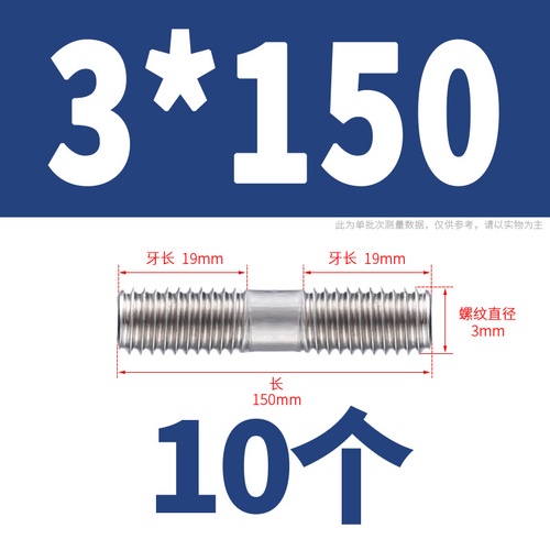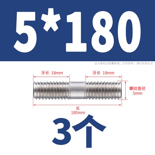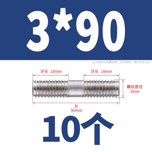 304 Stainless Steel Double-Ended Bolt Extended Two-Ended Thread Screw Bolt Bolt Screw Rod Thread Rod M3