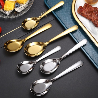 304 Stainless Steel Golden Soup Spoon Big Round Spoon Serving Spoon Rice Soup Spoon Tableware Utensils Sudu Panjang