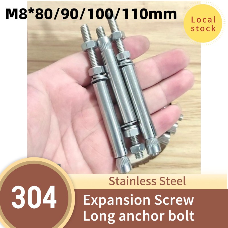 304 Stainless Steel LONG Expansion Screw M8 Screw Set Anchor Sleeve Concrete Anchor Bolt Link Rod Wall false ceiling AC