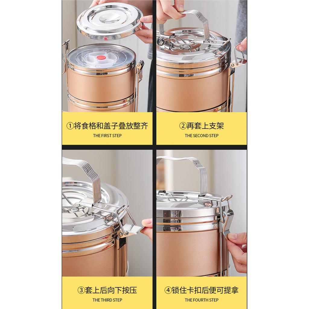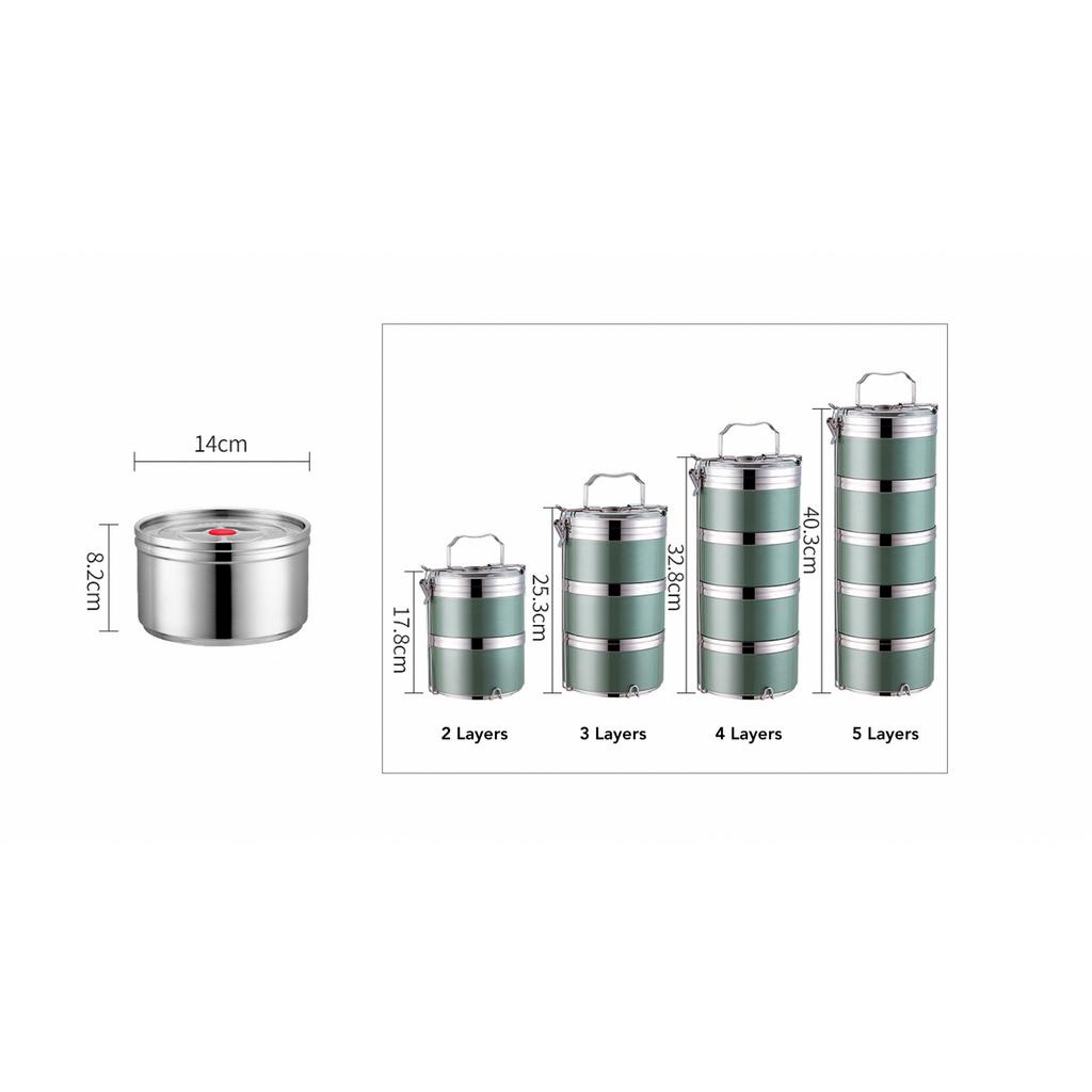 304 Stainless Steel Lunch Box 14cm x 2 Tier / 3 Tier / 4 Tier / 5 Tier Food Carrier Tingkat Food Container