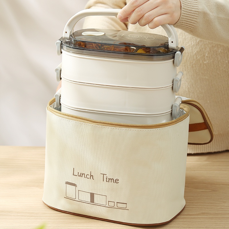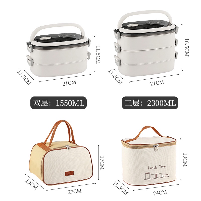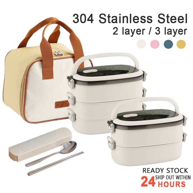 304 Stainless Steel Lunch Box Insulated Food Container Food Storage Box 2/3 layer Lunch Box Bag YM13