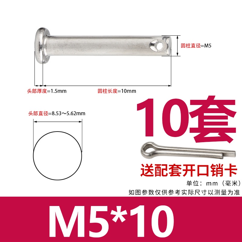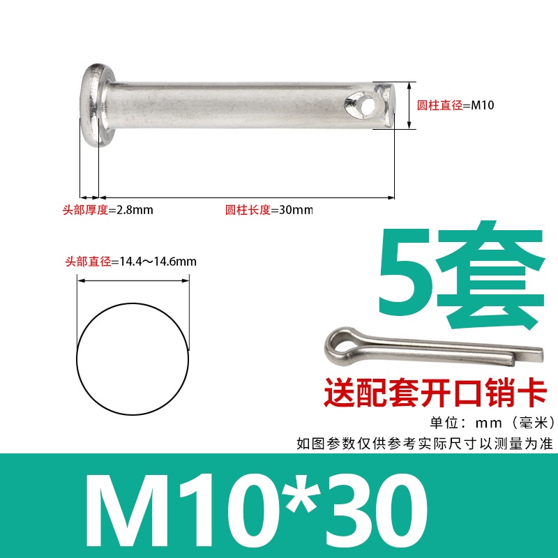 304 Stainless Steel Pin Shaft Flat Head With Hole Cylindrical Positioning Sub-Pin Nail M3M4M5M6M8M10