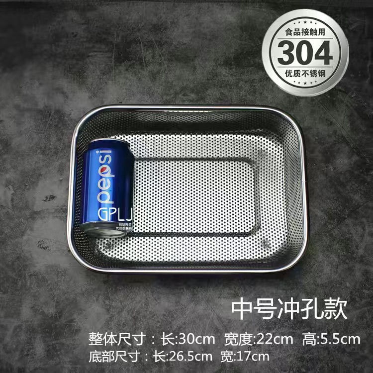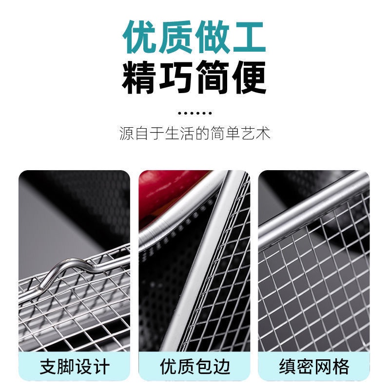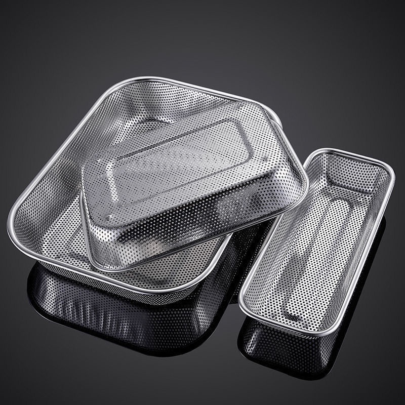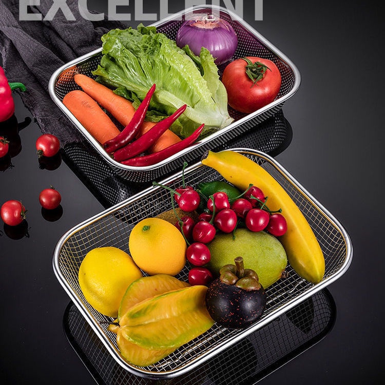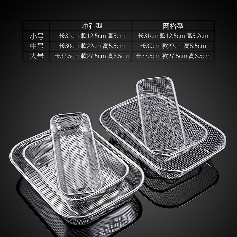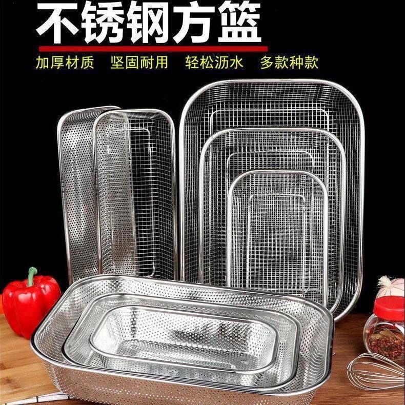 304 Stainless Steel Rectangular Mesh Basket Thick Steel Wire Mesh Sieve Kitchen Fruit Water Filter Basket Washing Vegetables Blue Tableware Drain Basket