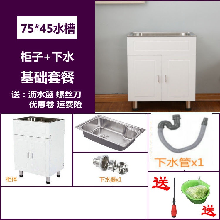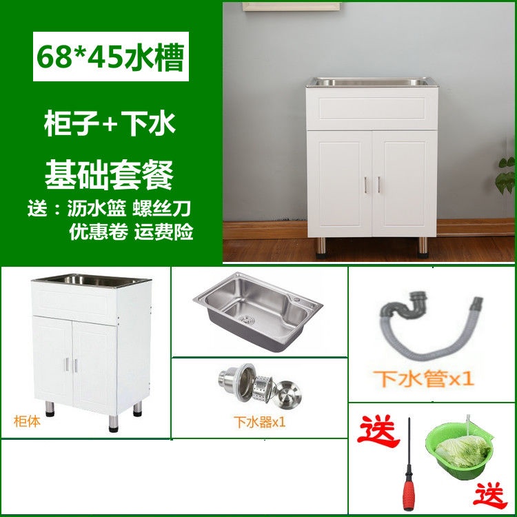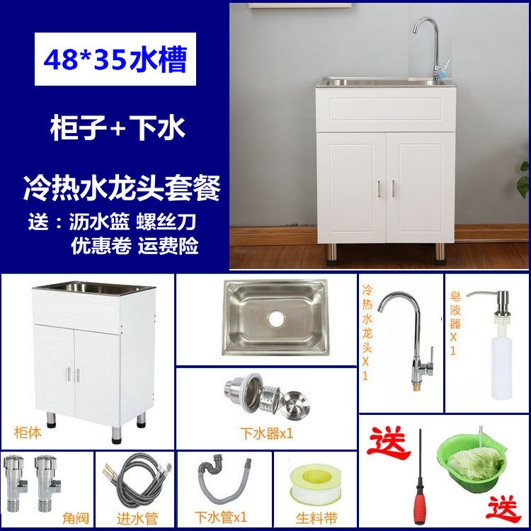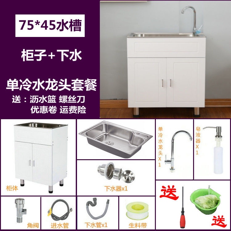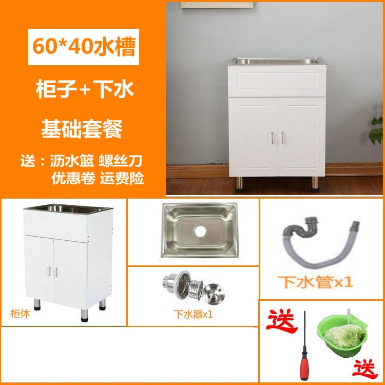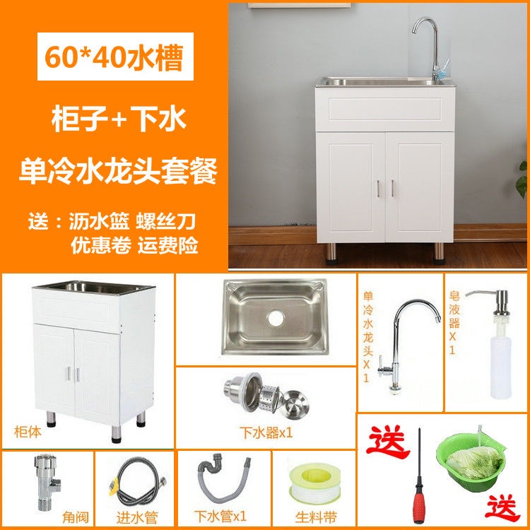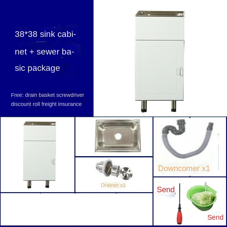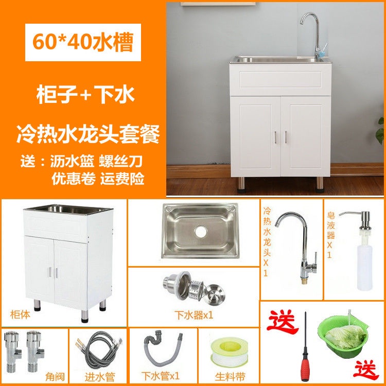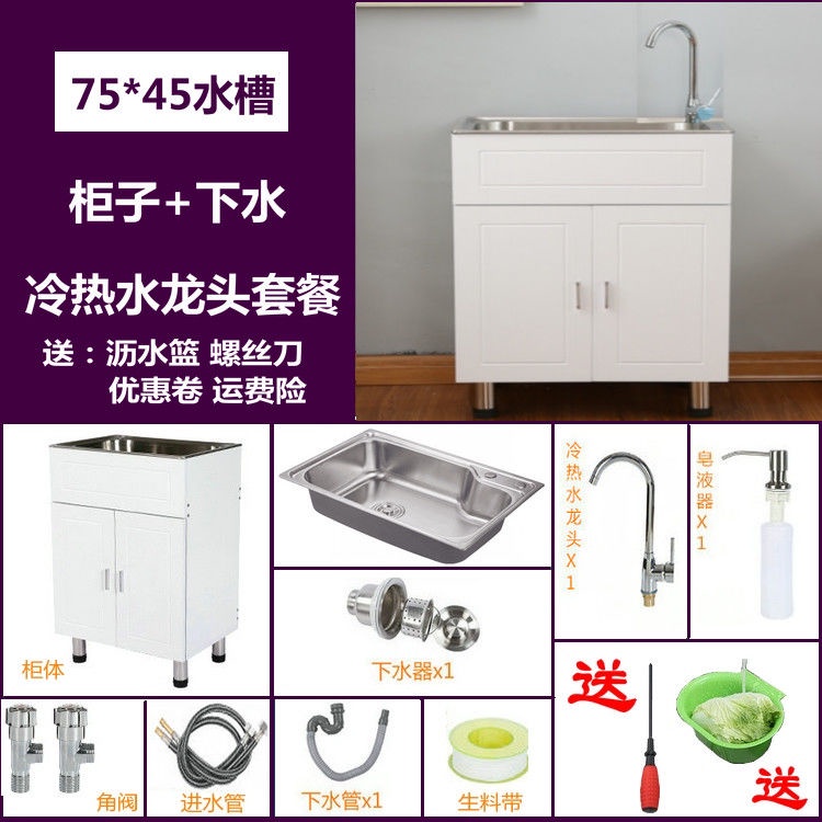 304 Stainless Steel Sink Wash Wardrobe Sink Balcony KitchenBasin Cabinet Floor Sink Cabinet Bathroom Cabinet Combination-Customize Kitchen Sink Cabinet Set / Available In Single Sink / Double Sink