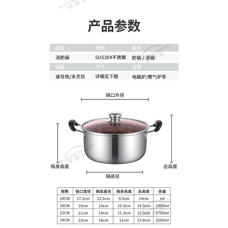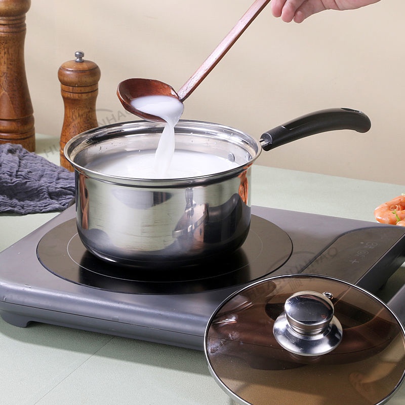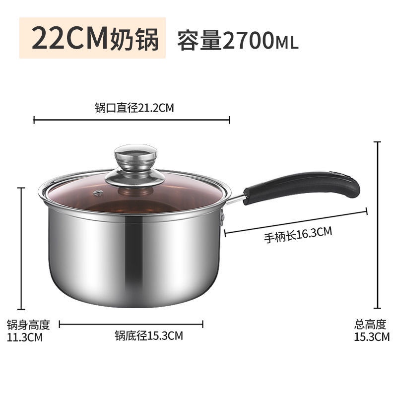 304 Stainless Steel Small Milk Boiling Pot Double Bottom Baby Food Supplement Non-Stick Instant Noodles Hot Milk Milk Household Milk Soup Pot