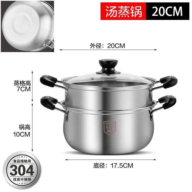 304 Stainless Steel Small Steamer Household Double-Layer Thickened Steamer Soup Pot Induction Cooker Gas Furnace Universal Pot-Steamer Pot/Soup Pot/Steam Wok / Cooking Pot