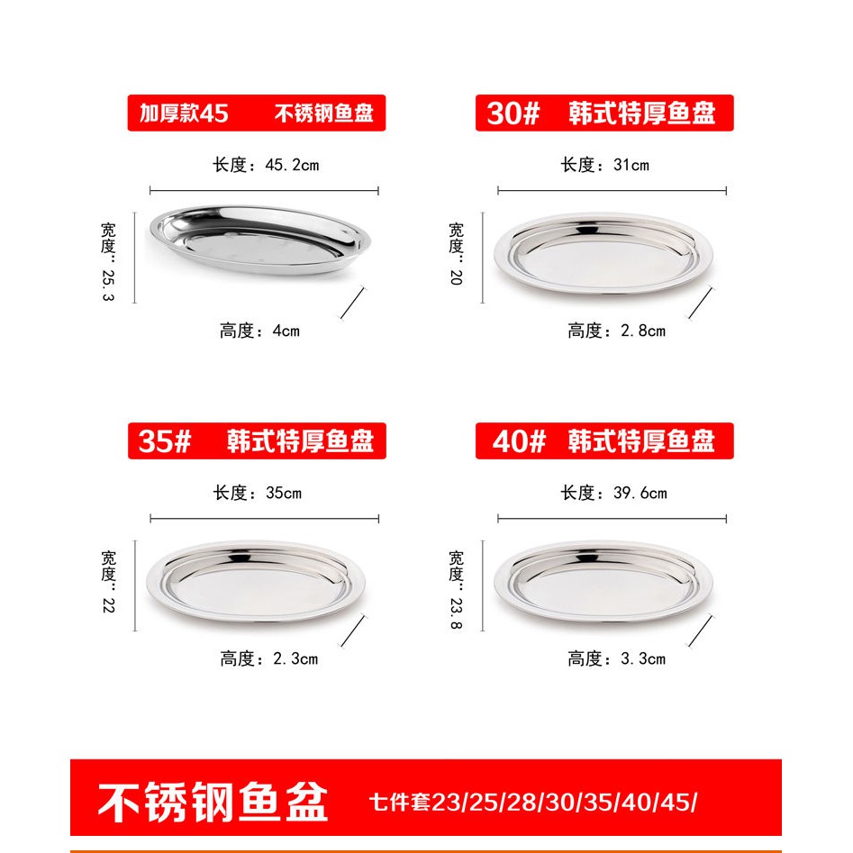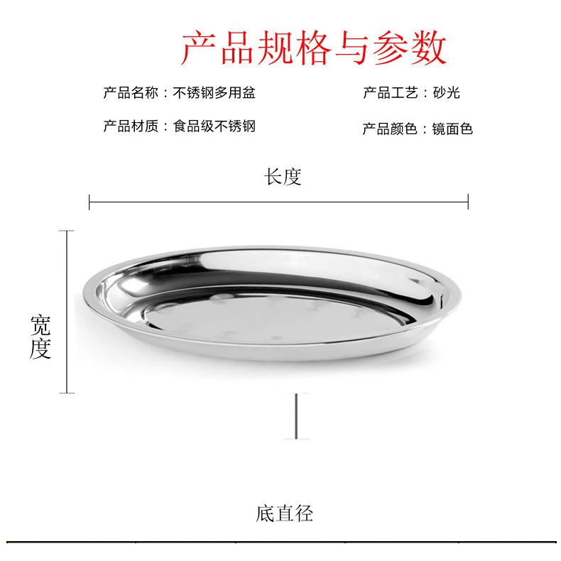 304 stainless steel fish plate household oval large fried and steamed long shaped vegetable vermicelli