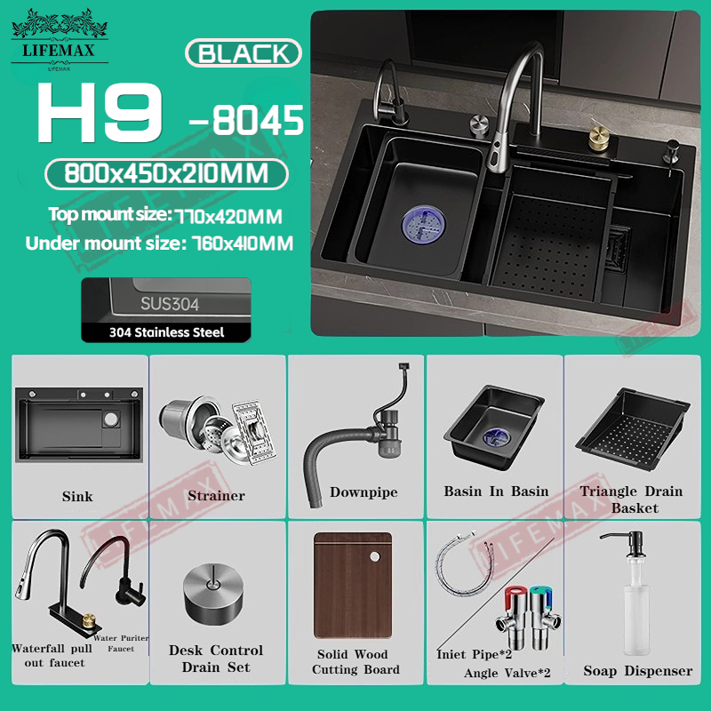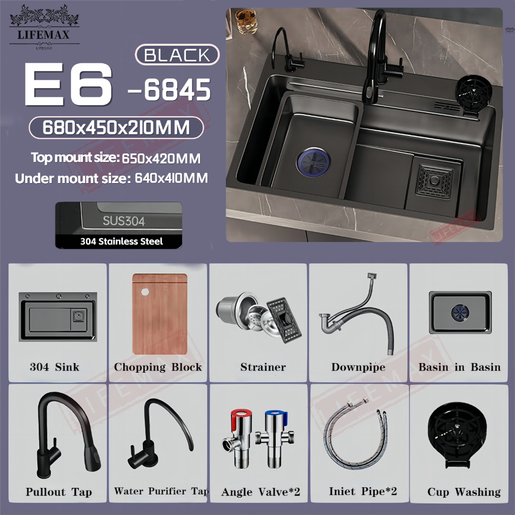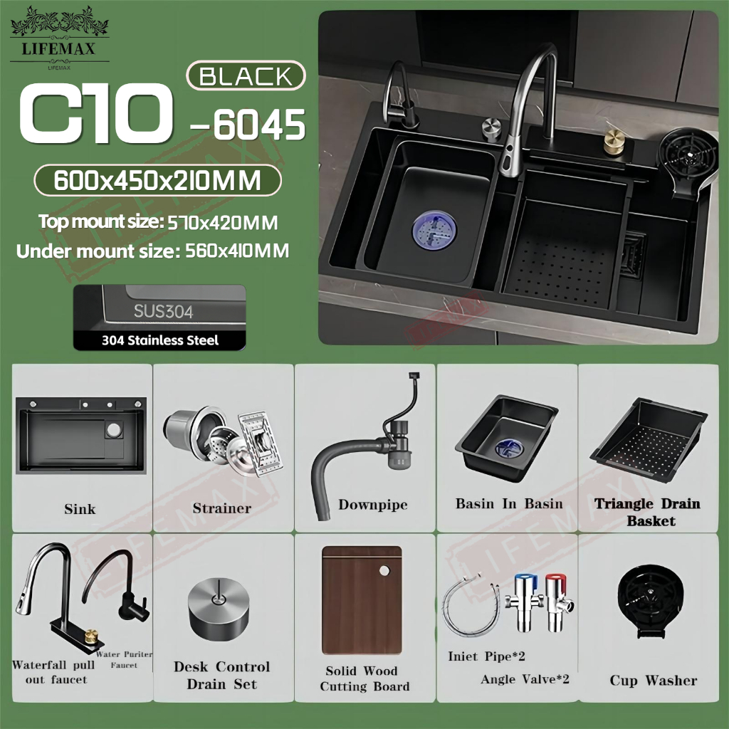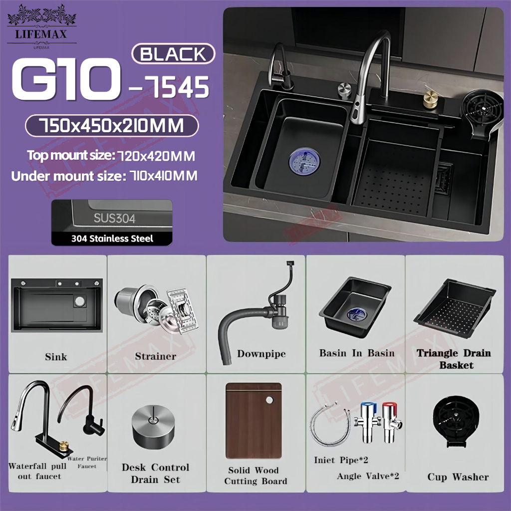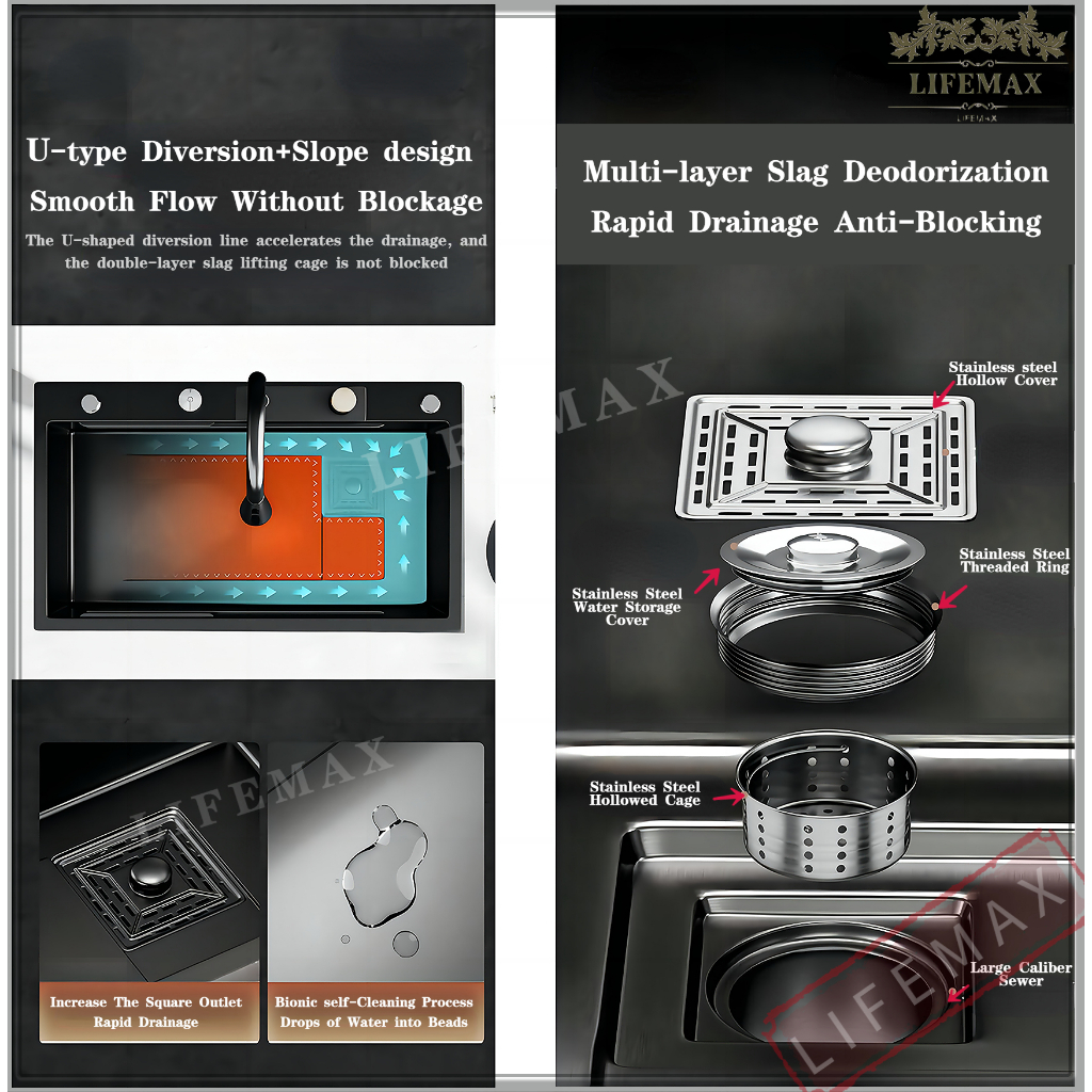 304 stainless steel nano kitchen waterfall sink/Pull faucet large single sink/cup washer set