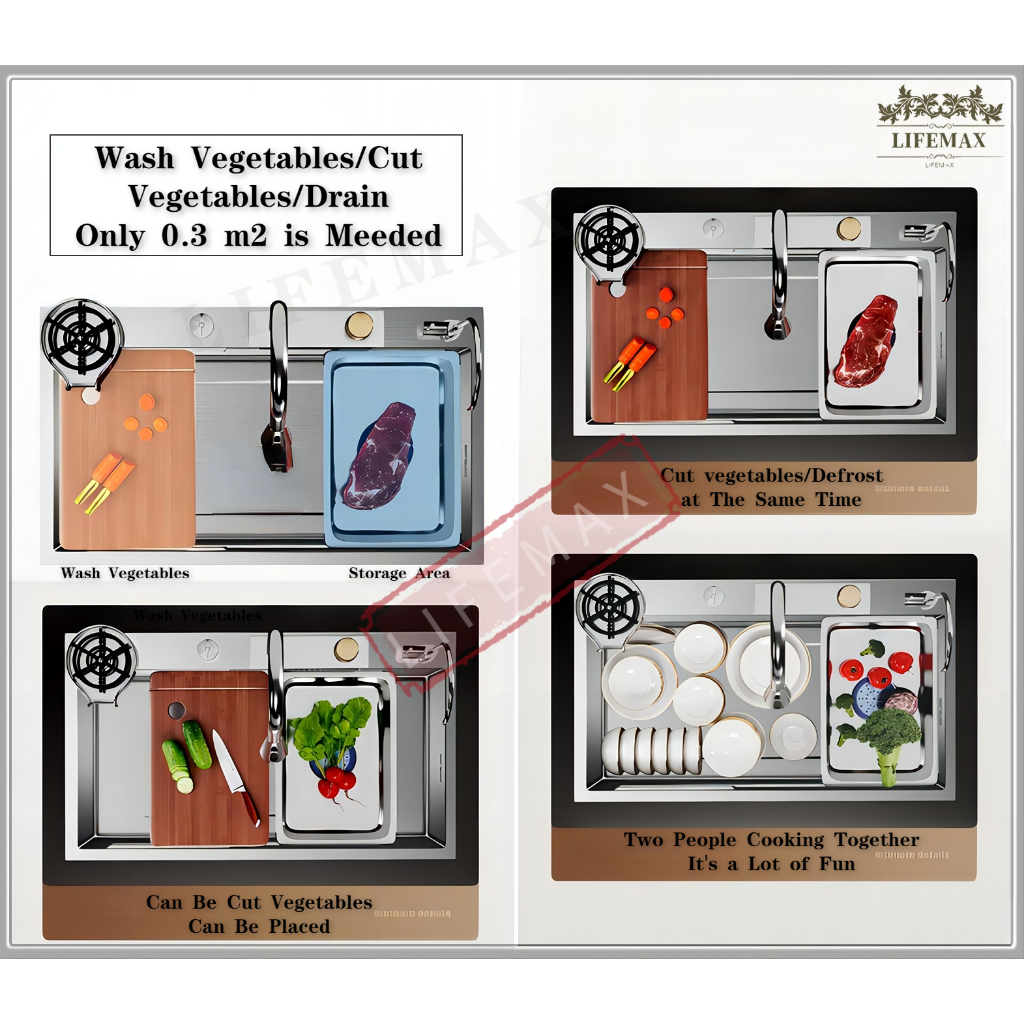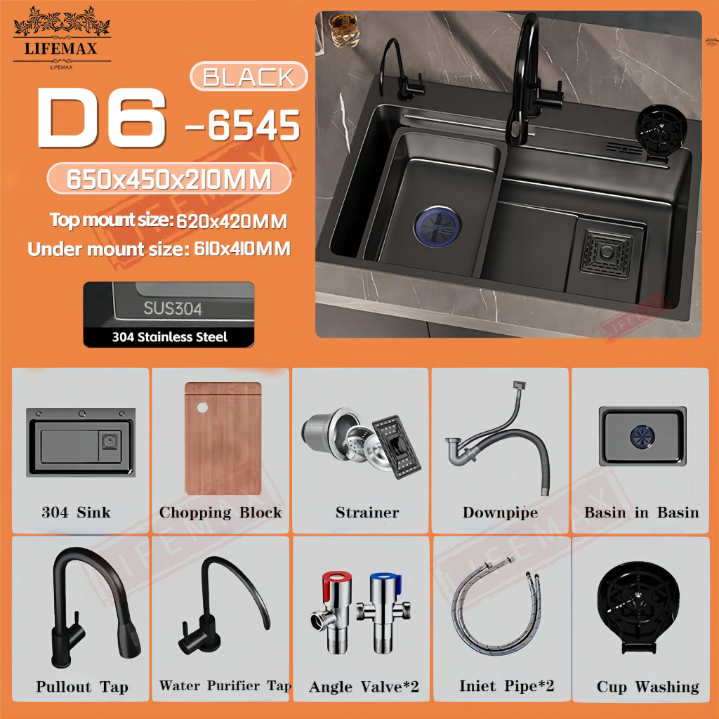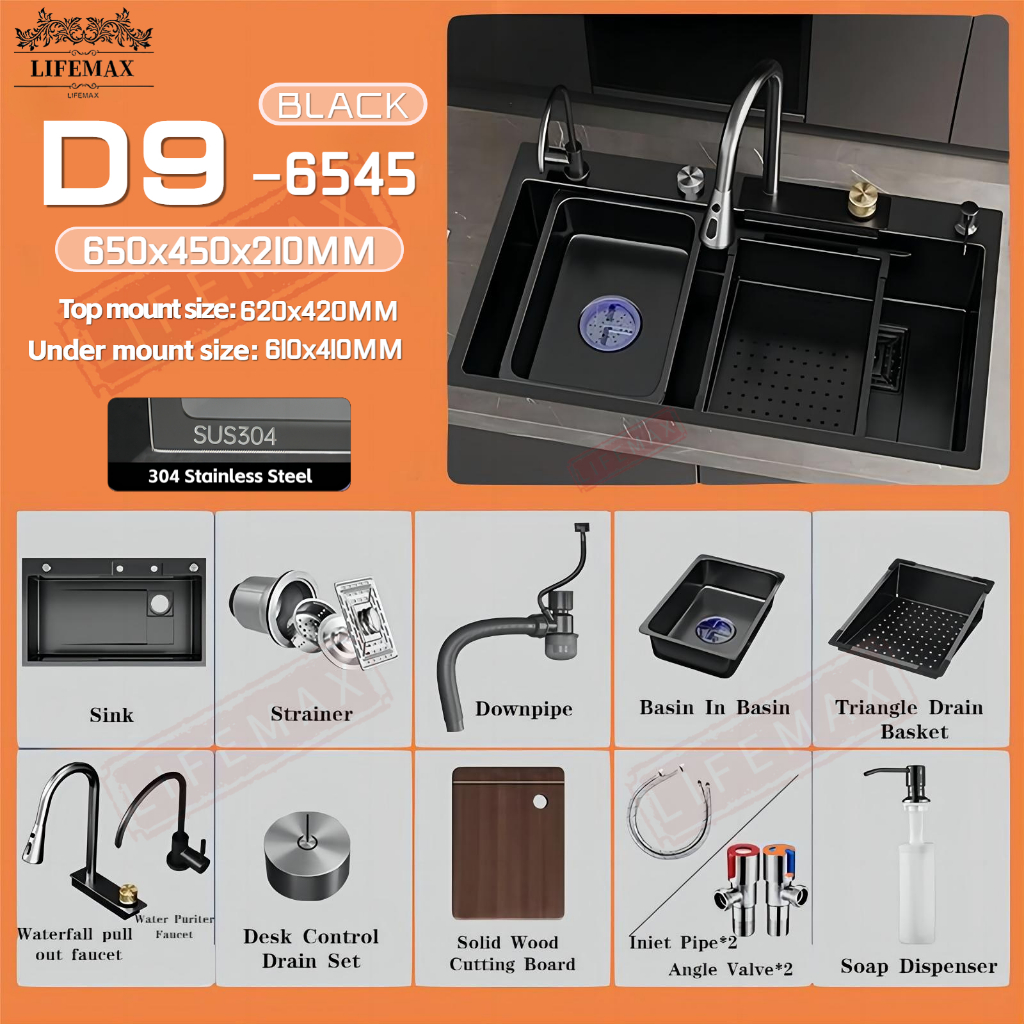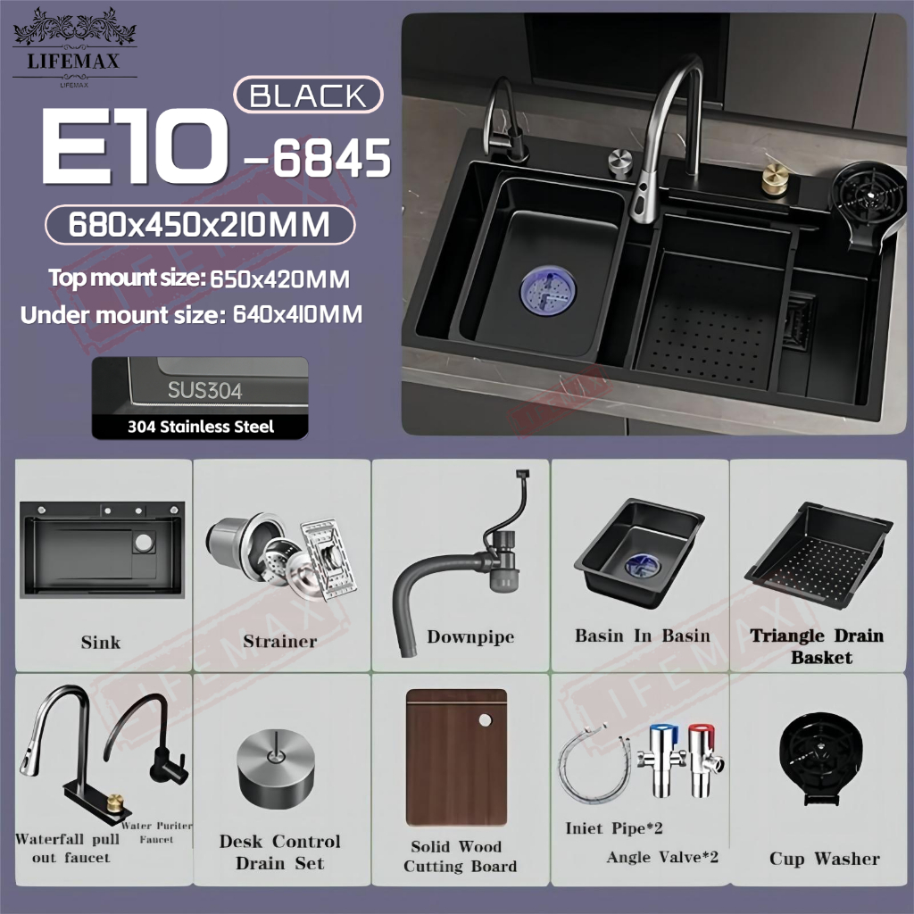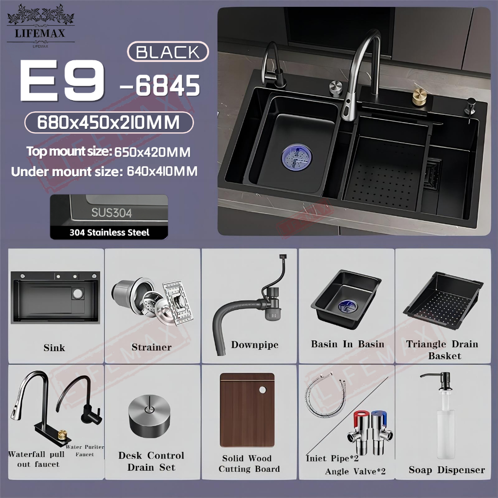 304 stainless steel nano kitchen waterfall sink/Pull faucet large single sink/cup washer set
