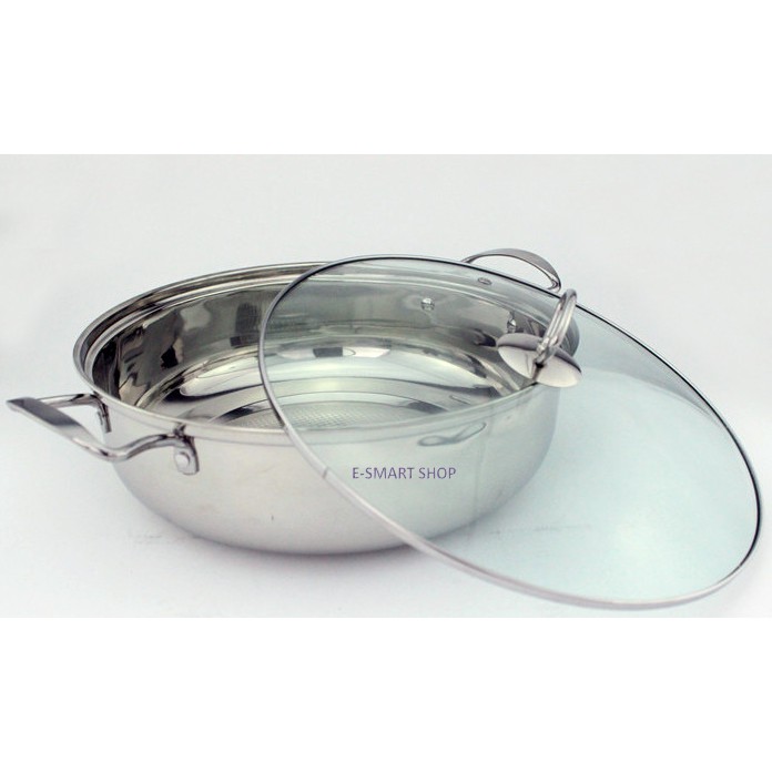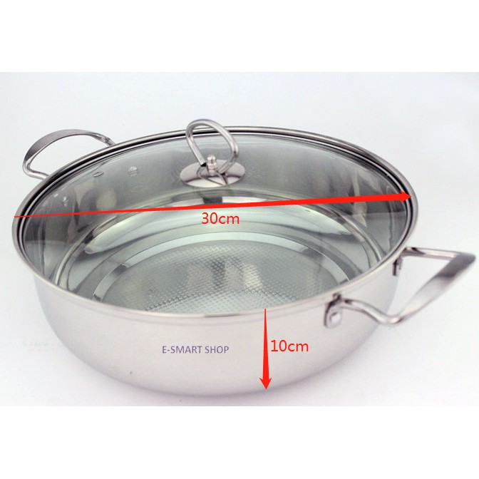 30CM / 32cm Stainless Steel Hot Pot Soup Cooking Pots With Glass Cover
