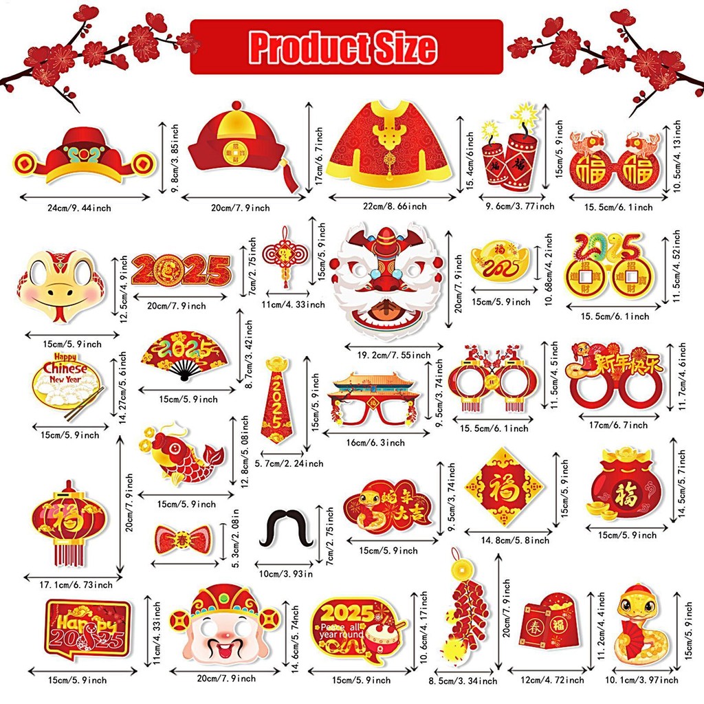 30pcs Snake New Year Photo Props Red Gold Snake Festival Decor Photo Booth Props 2025 Funny Year of The Snake Photo Accessories drea2sg