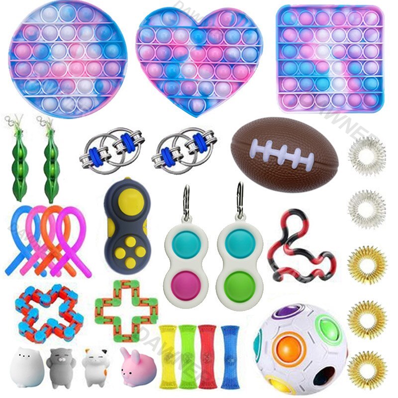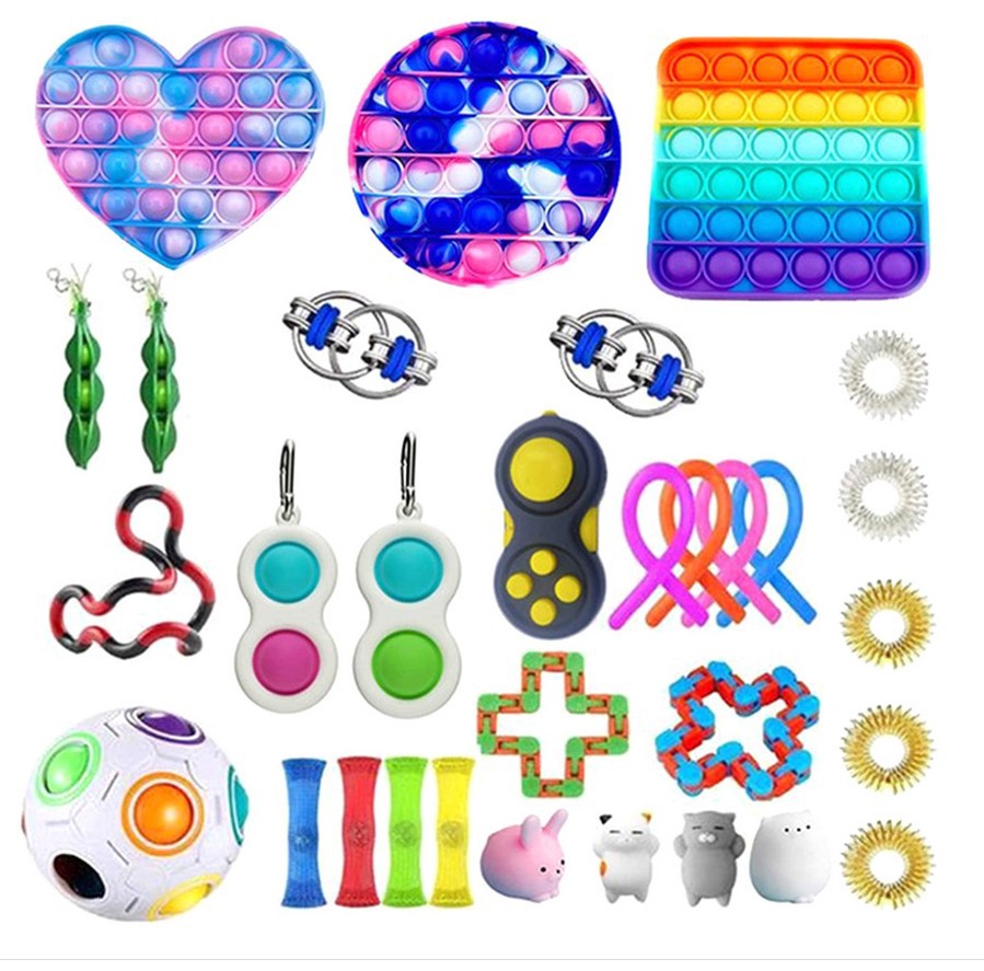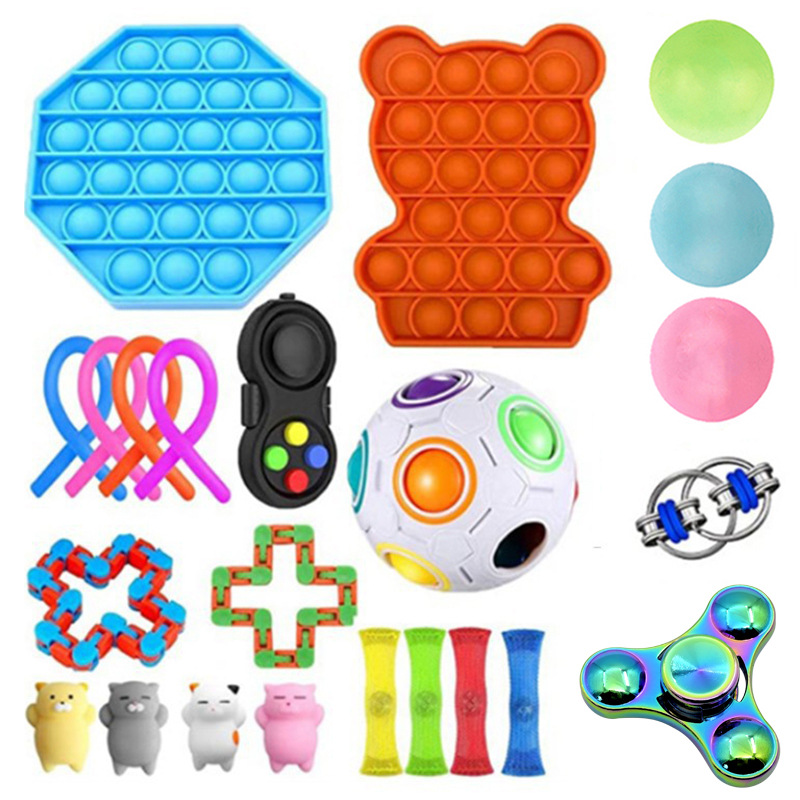 31PCS/SET Fidget Toy Set Kids Cheap Pop Its Pack Sensory Stress Relief Toys PopIt Mesh And Marble It Simple Dimples Game Digits Fat brain