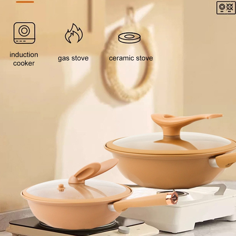 32CM Clay non-stick Frying Pan With Lid And Steamer Polygonal Bottom Ceramic Steamer Frying Pan Cooking Pot