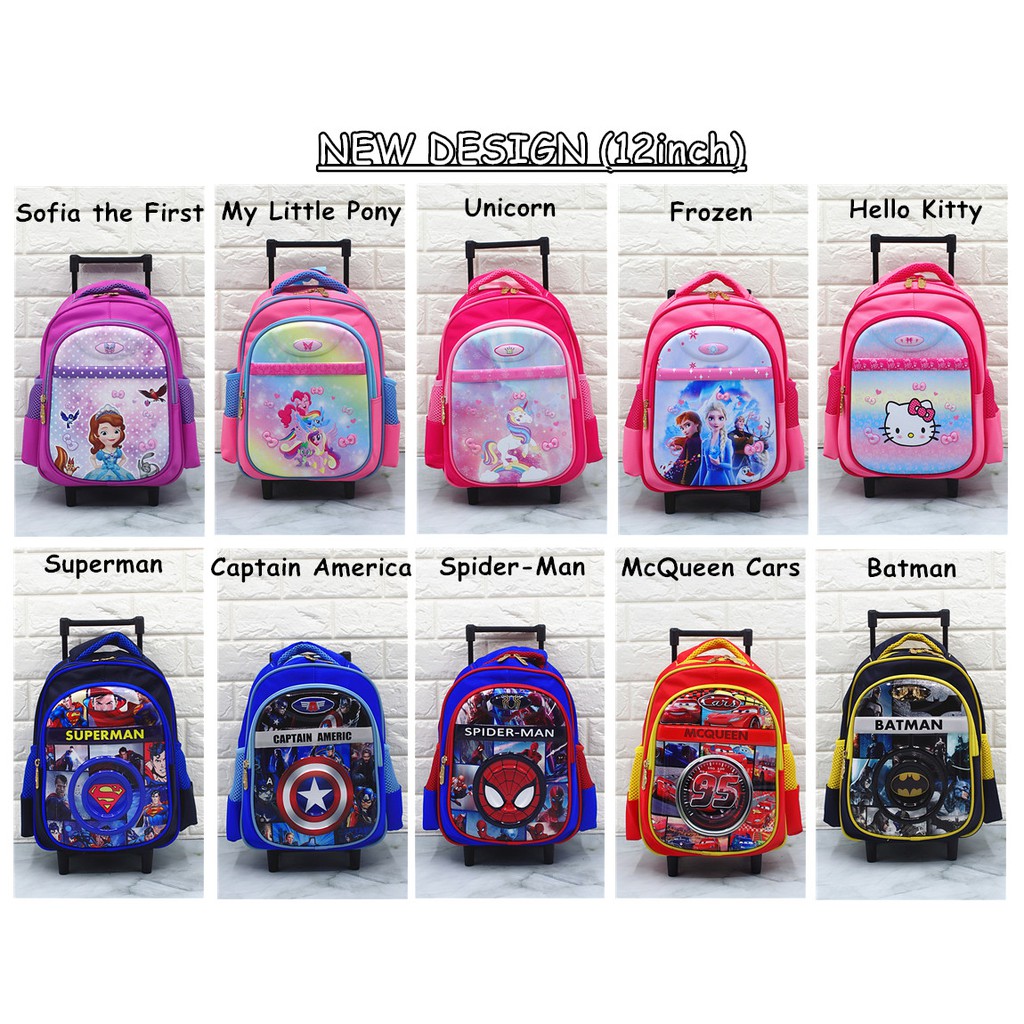 32cm Cartoon Trolley School Backpack Kids Trolley Bag 12'' (BGJAYA)