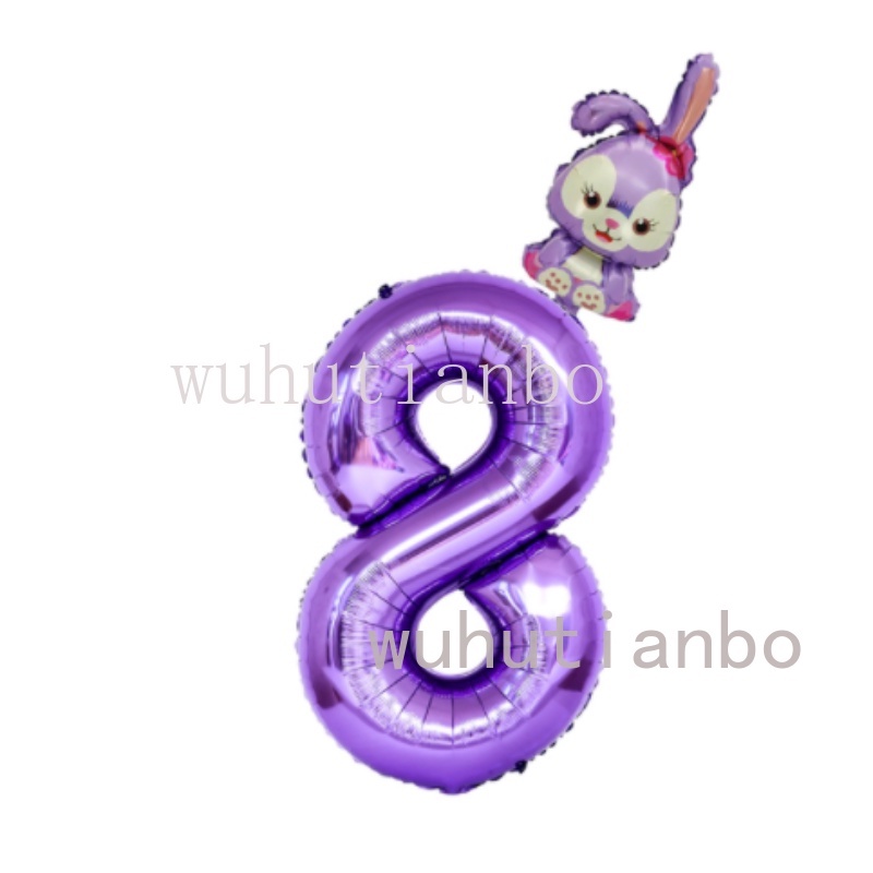 32inch Purple Number with Stella Lou Balloon Set Mini LinaBell Foil Balloon Baby Shower Children's Birthday Party Decoration Number Balloon