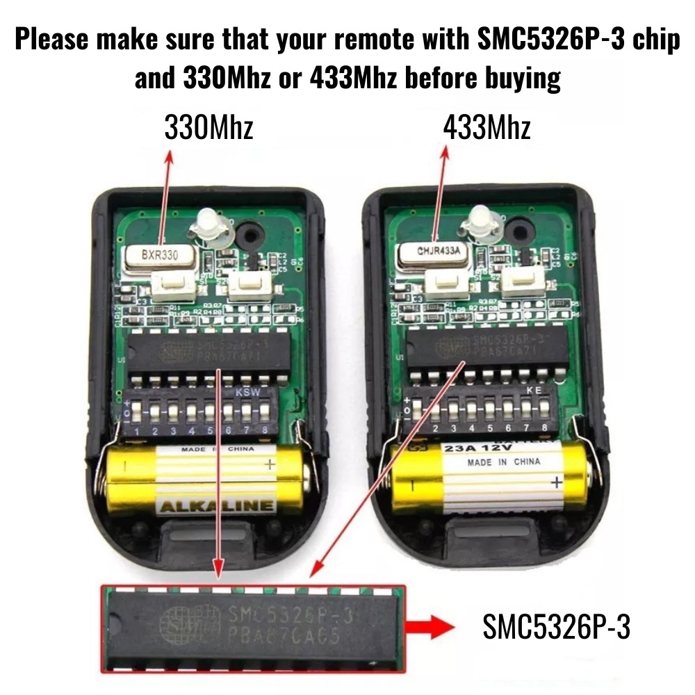 330MHz AutoGate Door Remote Control SMC5326 433MHz Auto Gate Wireless Remote 5326 8dip Fixed Dial Code