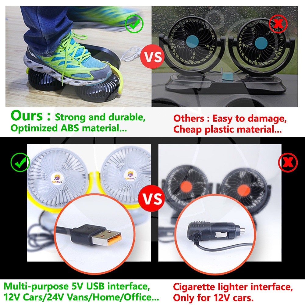 360° Truck Fan Car Fan Super Strong Wind 3 Speed Air Conditioning car Fan Dual Head Silent 12V 24V Universal