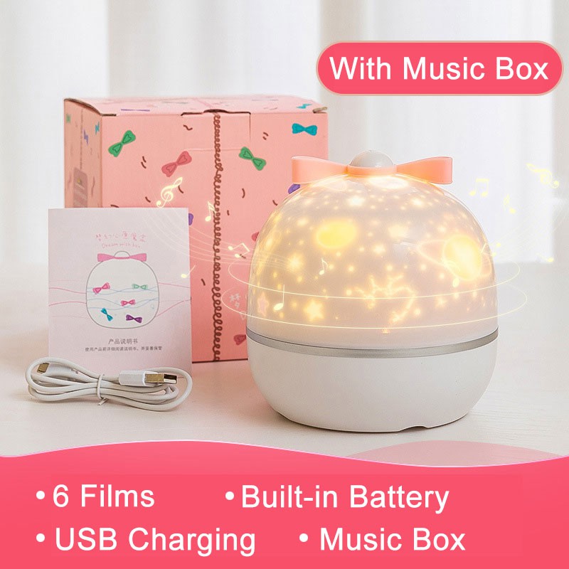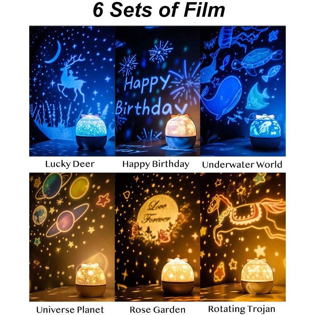 360 Degree Rotation LED Night Light Projector 6 Projection Films Starry Romance Home Decor Kids Bedroom