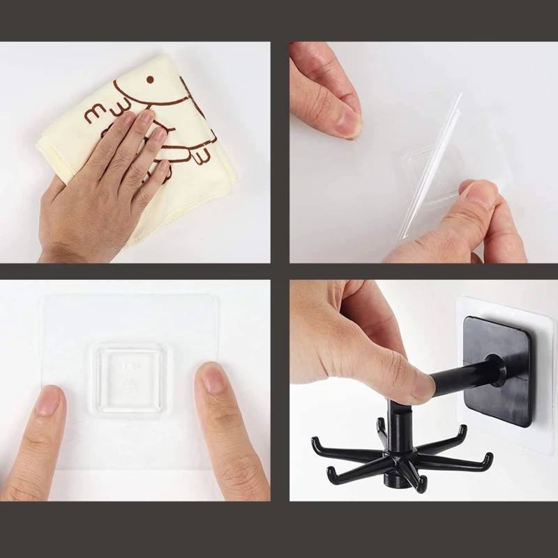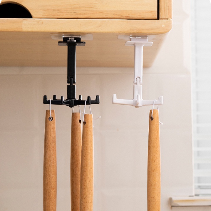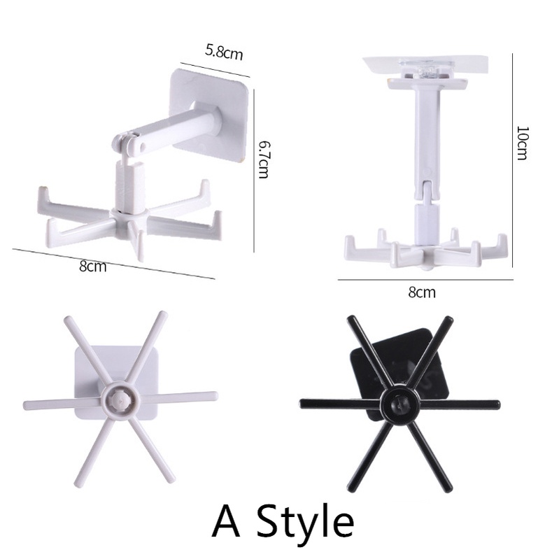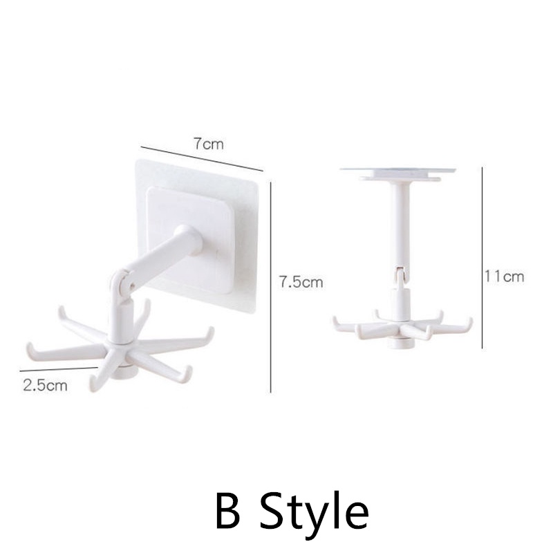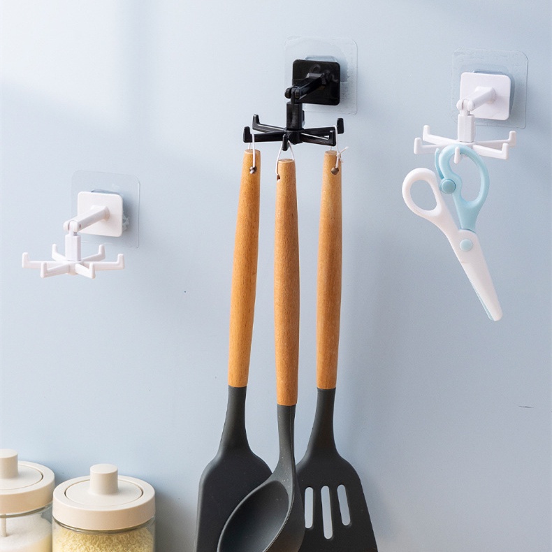 360 Degrees Rotated Kitchen Hooks Self Adhesive 6 Hooks Wall Door Hook Handbag Clothes Ties Hanging Rack