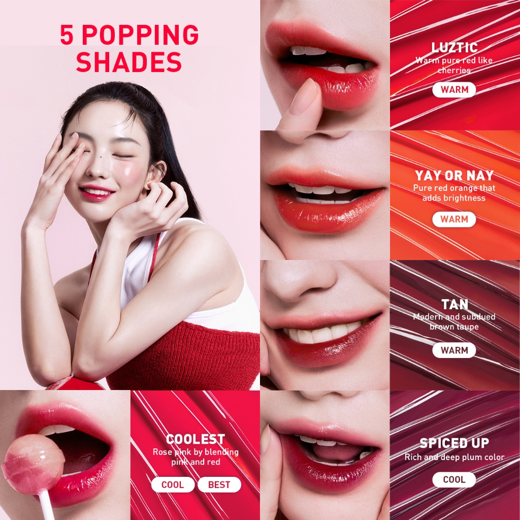 3CE Lazy Pop Lip Stain, water resistant lightweight formula with coconut oil and glycerin, long Intense moisturized lip