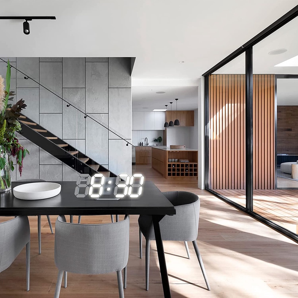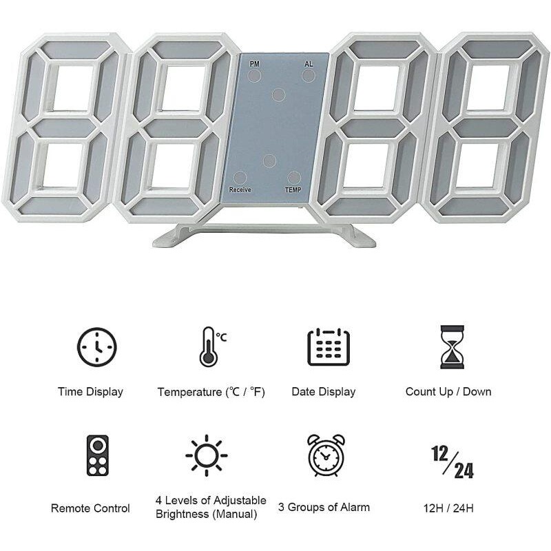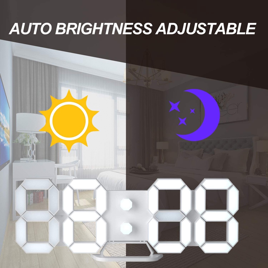 3D LED Desk Clock, Smart Wall Clock with Time/Date/Temperature/Alarm/Display Sensor Function