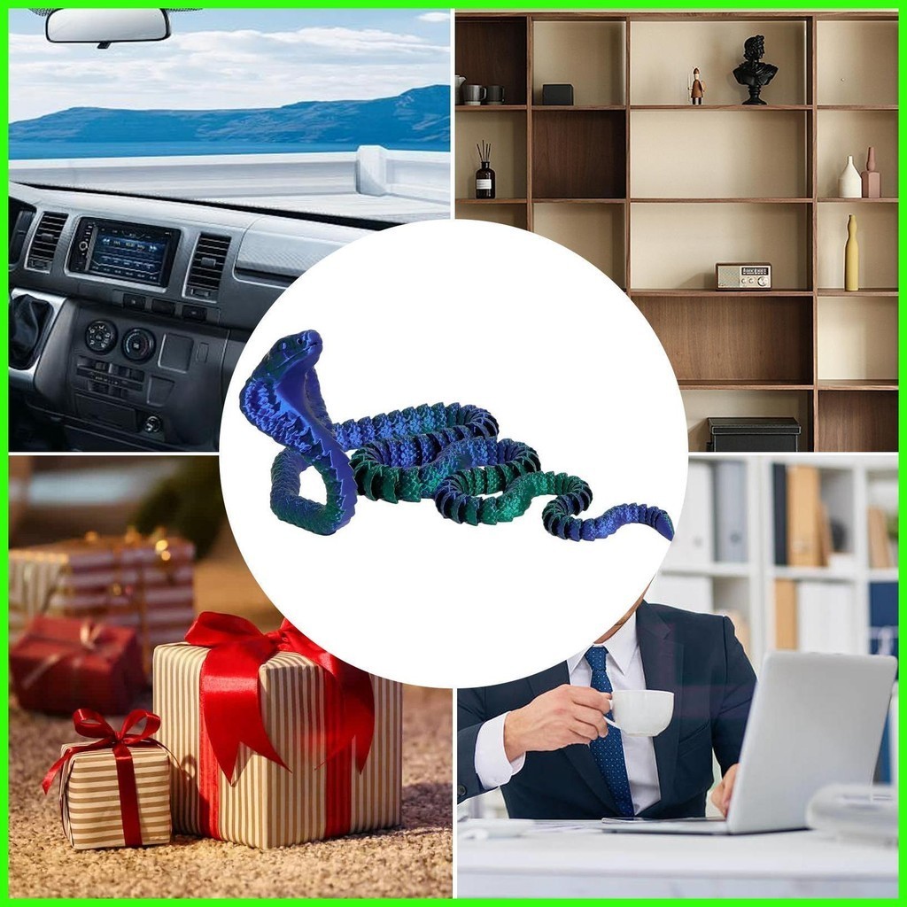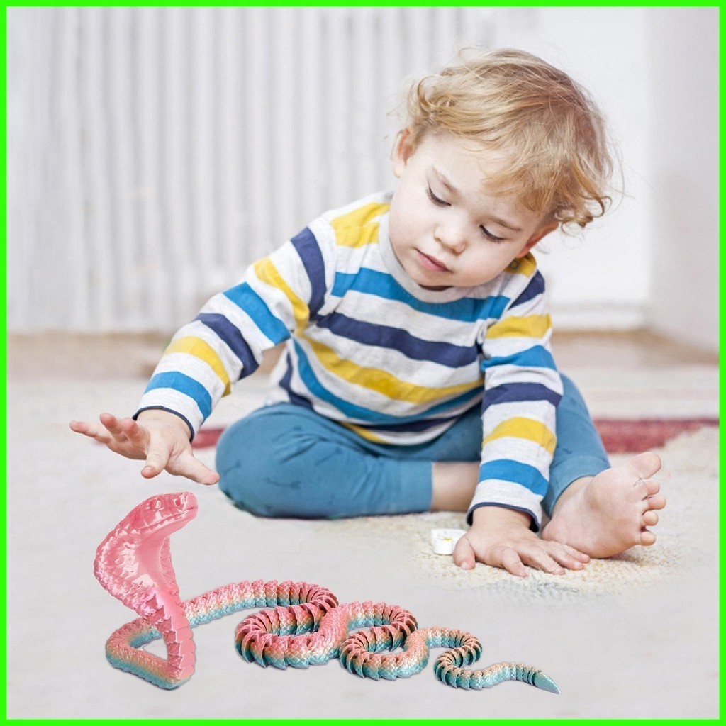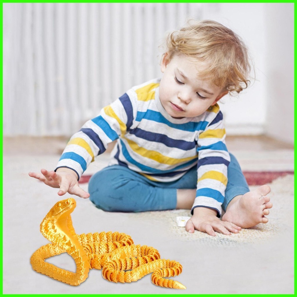 3D Printed Snake Flexible 3D Printed Flexible Cobra Fidget Toy Figurine 3D Printed Animals for Birthday drea2sg drea2sg