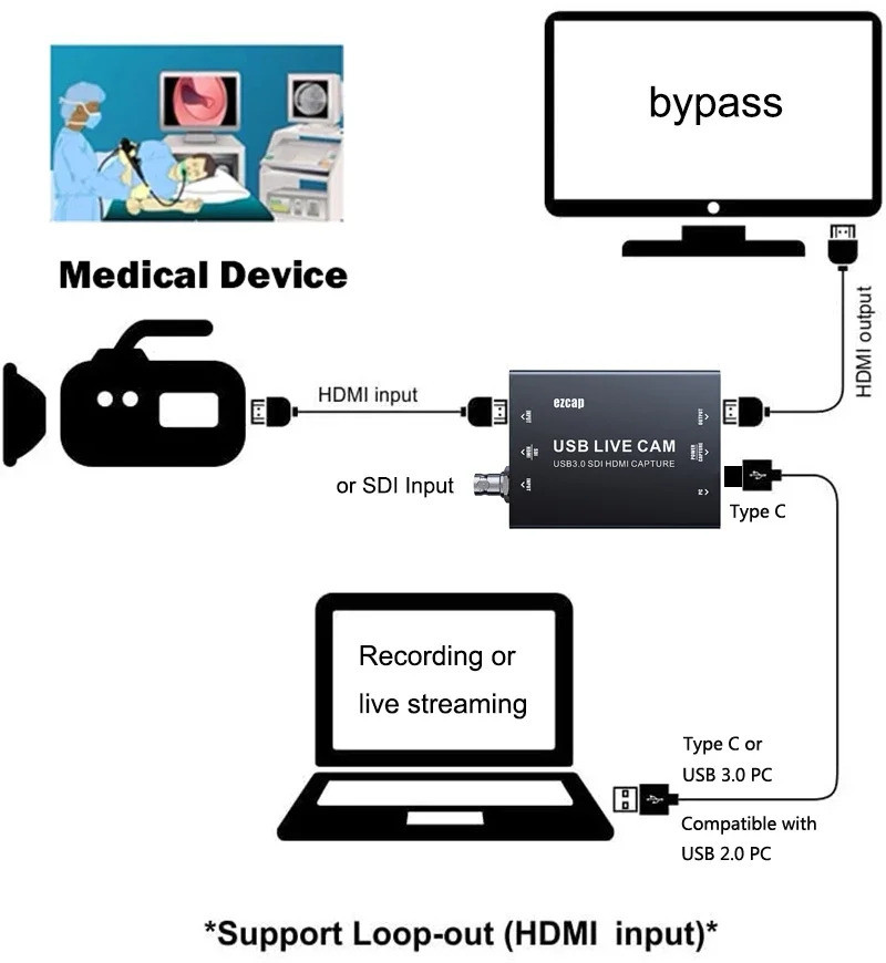 3G-SDI HDMI Video Capture Card USB 3.0 4K Loop 1080P 60fps 120fps Record Live Streaming Device for PS3 PS4 Xbox Game Laptop PC