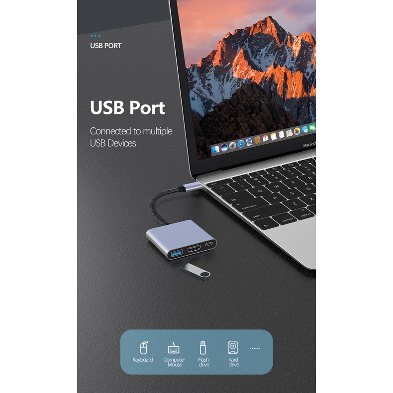 3In1 Multi-Function USB C Docking Station Type C To HDMI 4K PD USB 3.0 C USB-C Dock Type-C Hub Adapter for Laptop Switch Phone Tablet