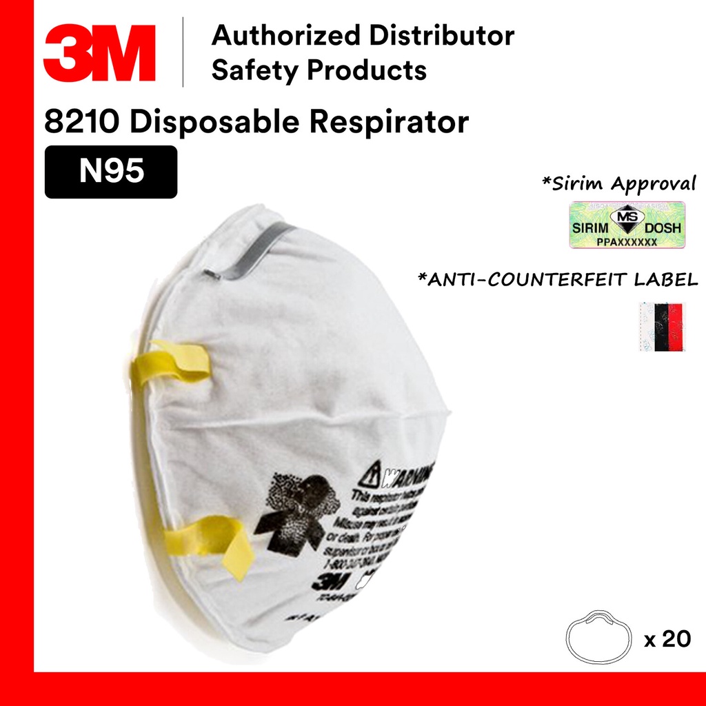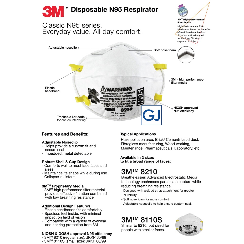 3M 8210 8110S(Small Size) 8210V N95 Particulate Respirator Haze Dust Mask/ Flu Prevention/ NIOSHDOSH SIRIM (20 pcs/box)