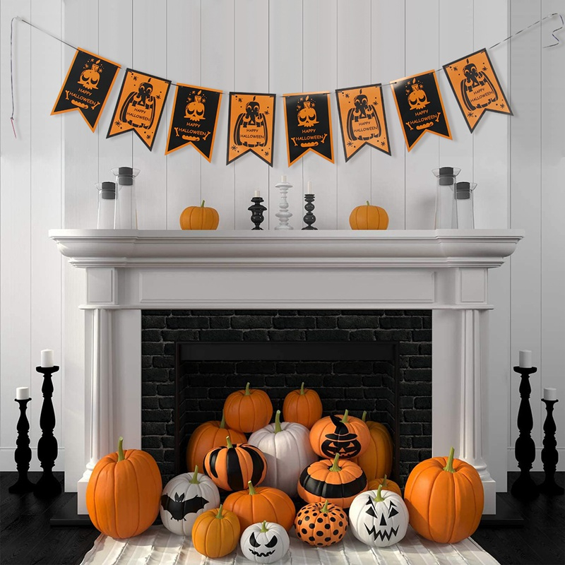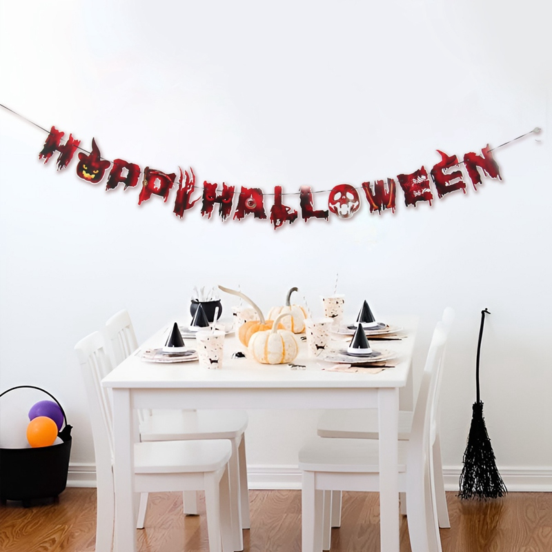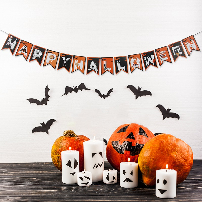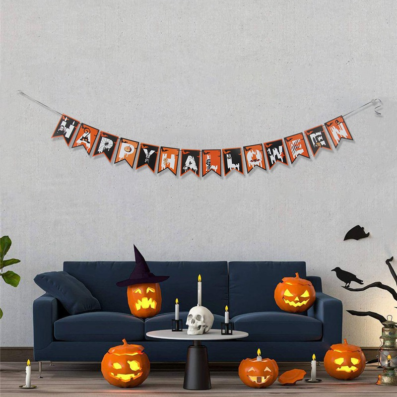 3M Halloween Pull Flag Halloween Party Decoration Hanging Banner Trick or Treat Banner Letter Ghosts Bunting Flags Wall Decor Photoshoot Background Happy Halloween Decorations