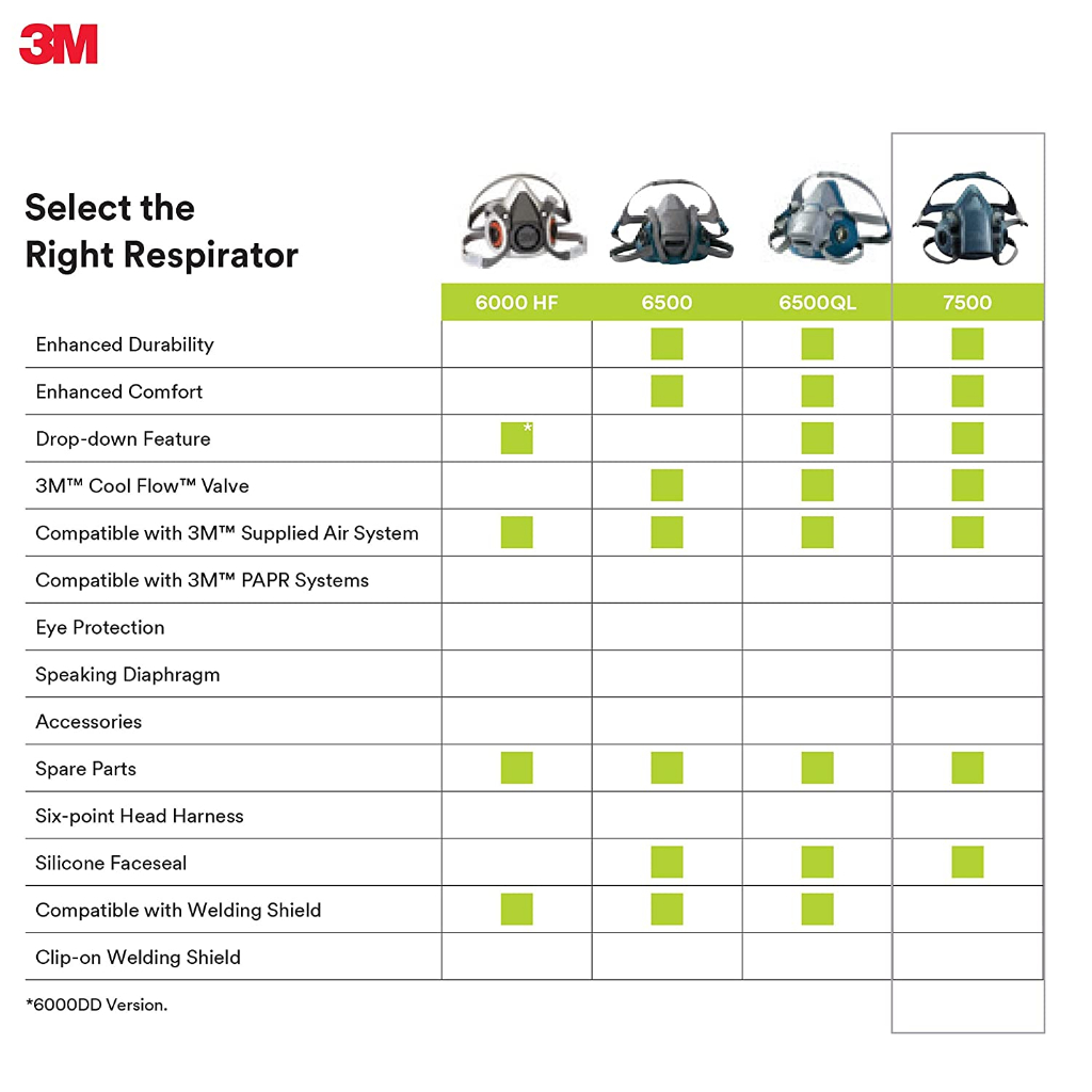 3M Reusable Respirator, Half Face Mask, Silicone Ultimate Half Mask 7500 Series With Cool Flow Exhalation Valve, 4 Point