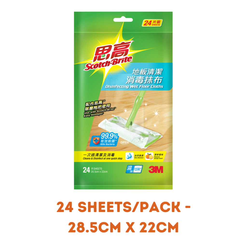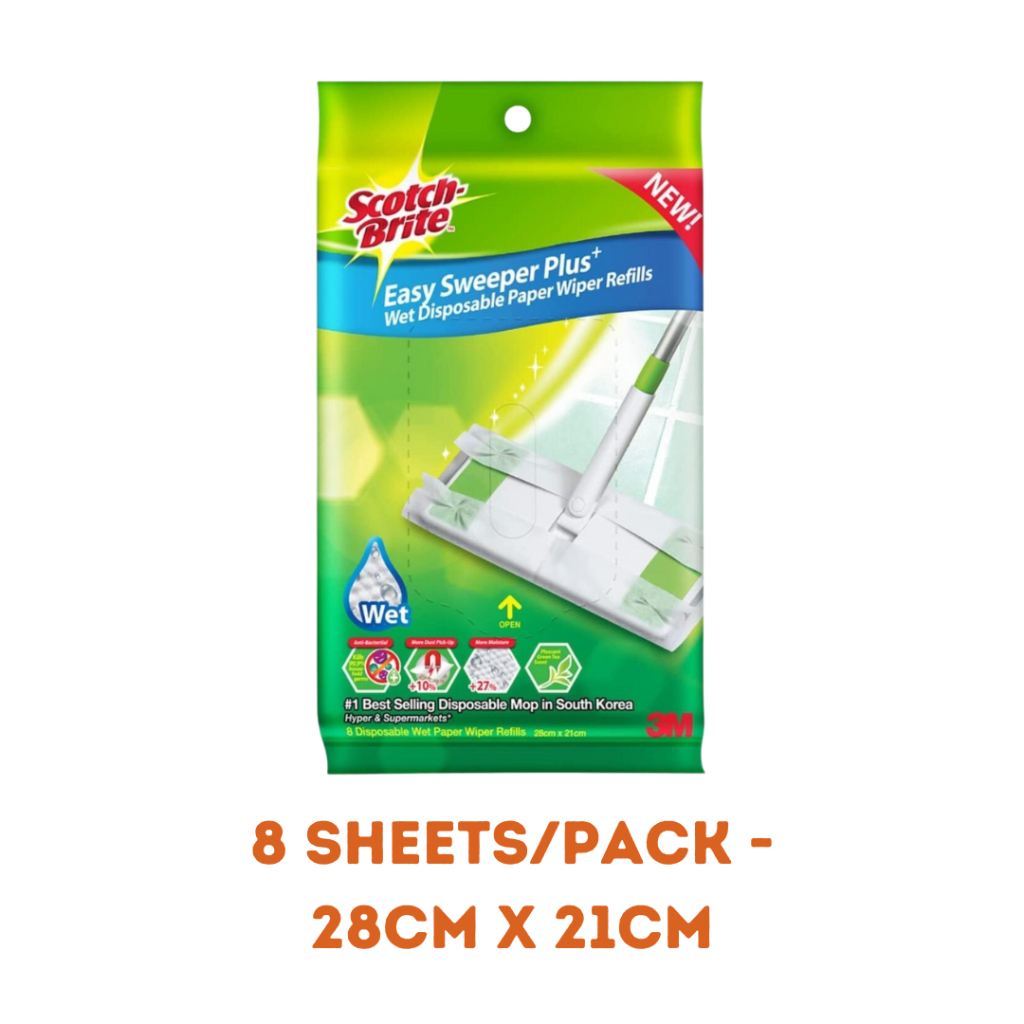 3M Scotch Brite Anti Bacterial Easy Sweeper Floor Wipes WET/DRY Floor Wipes Disposable Paper Wiper Refill