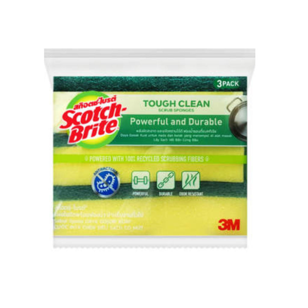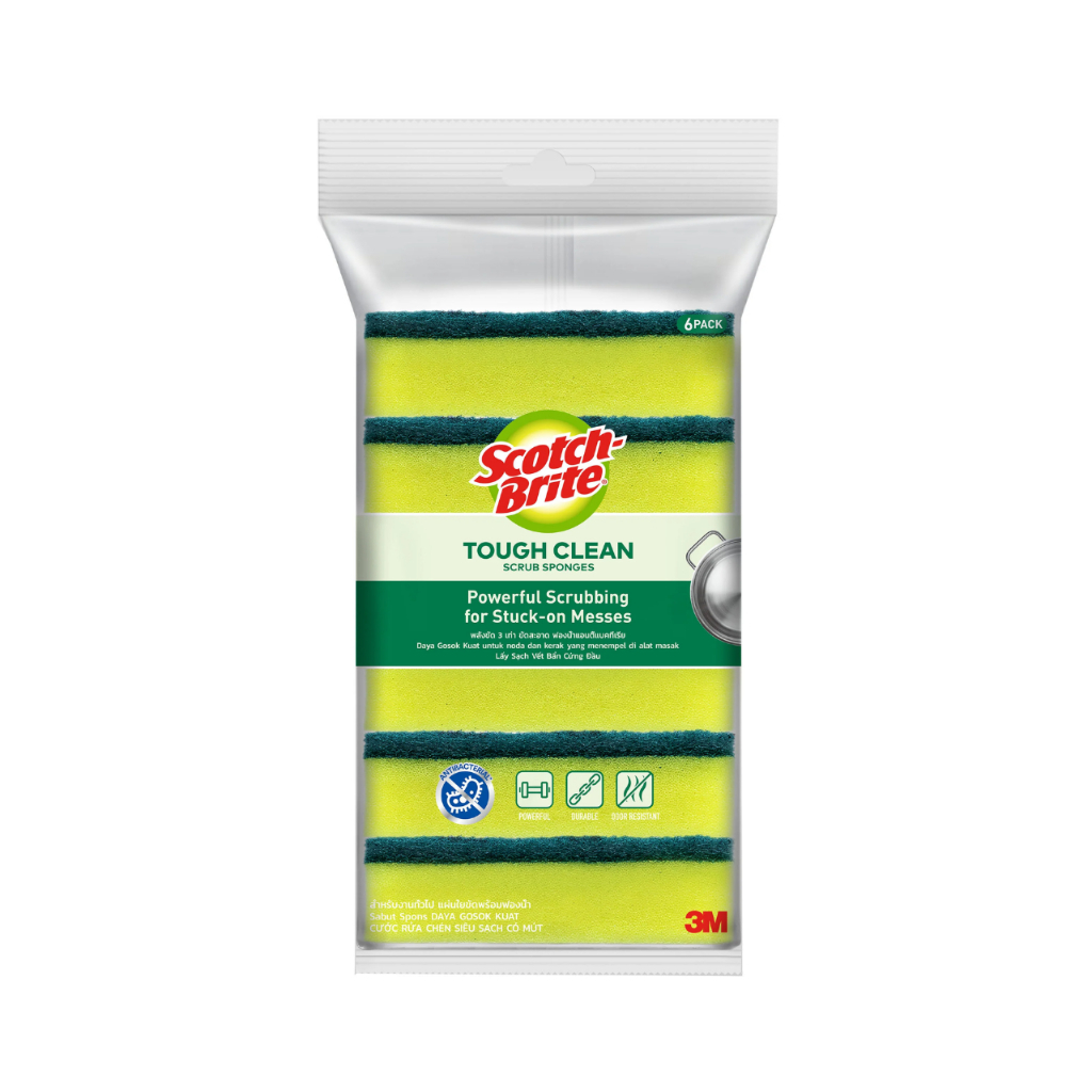 3M Scotch Brite General Duty Sponge - Tough Clean, Antibacterial, Versatile for Tough Stains