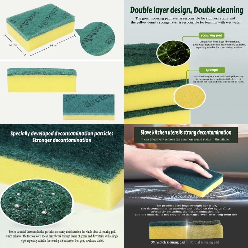 3M Scotch-Brite General Kitchen Utensils Sponge Pads Metal Ball Scouring Pad Strong Decontamination Cleaning Sponge