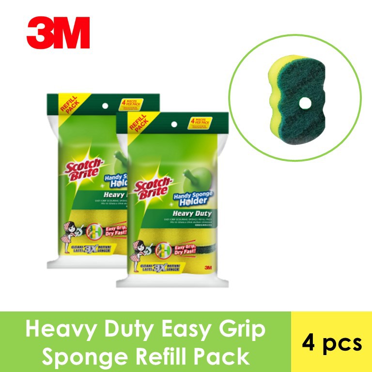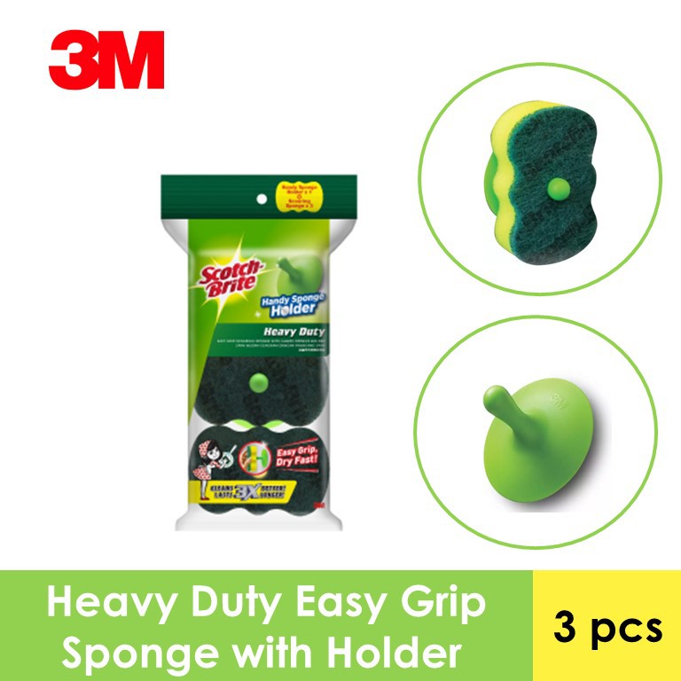 3M Scotch Brite Heavy Duty Easy Grip Scouring Sponge with Holder (3 Pcs/Pack) and 2 packs of Refill Pack (4 Pcs/Pack)