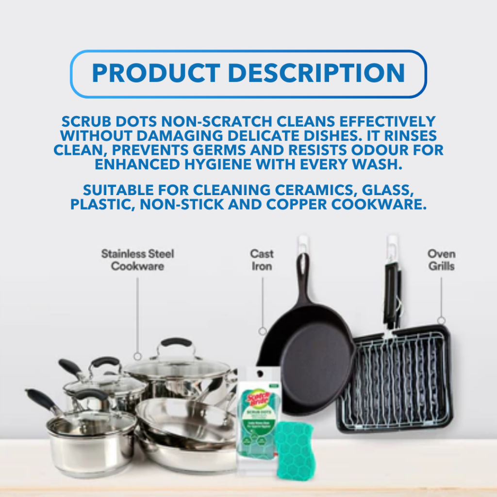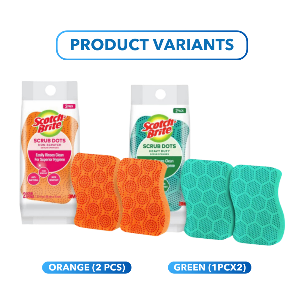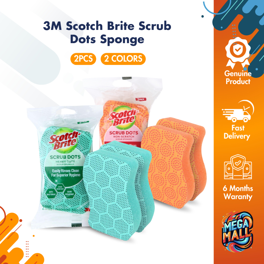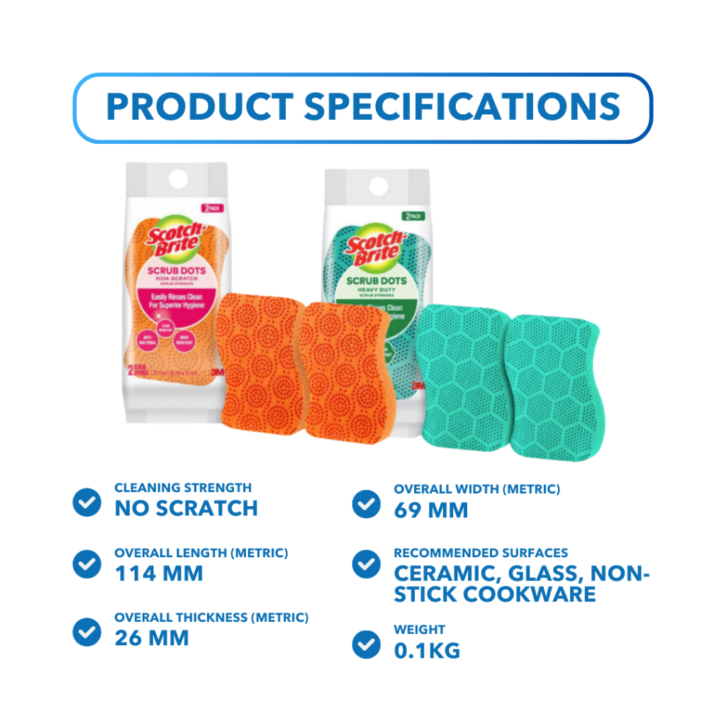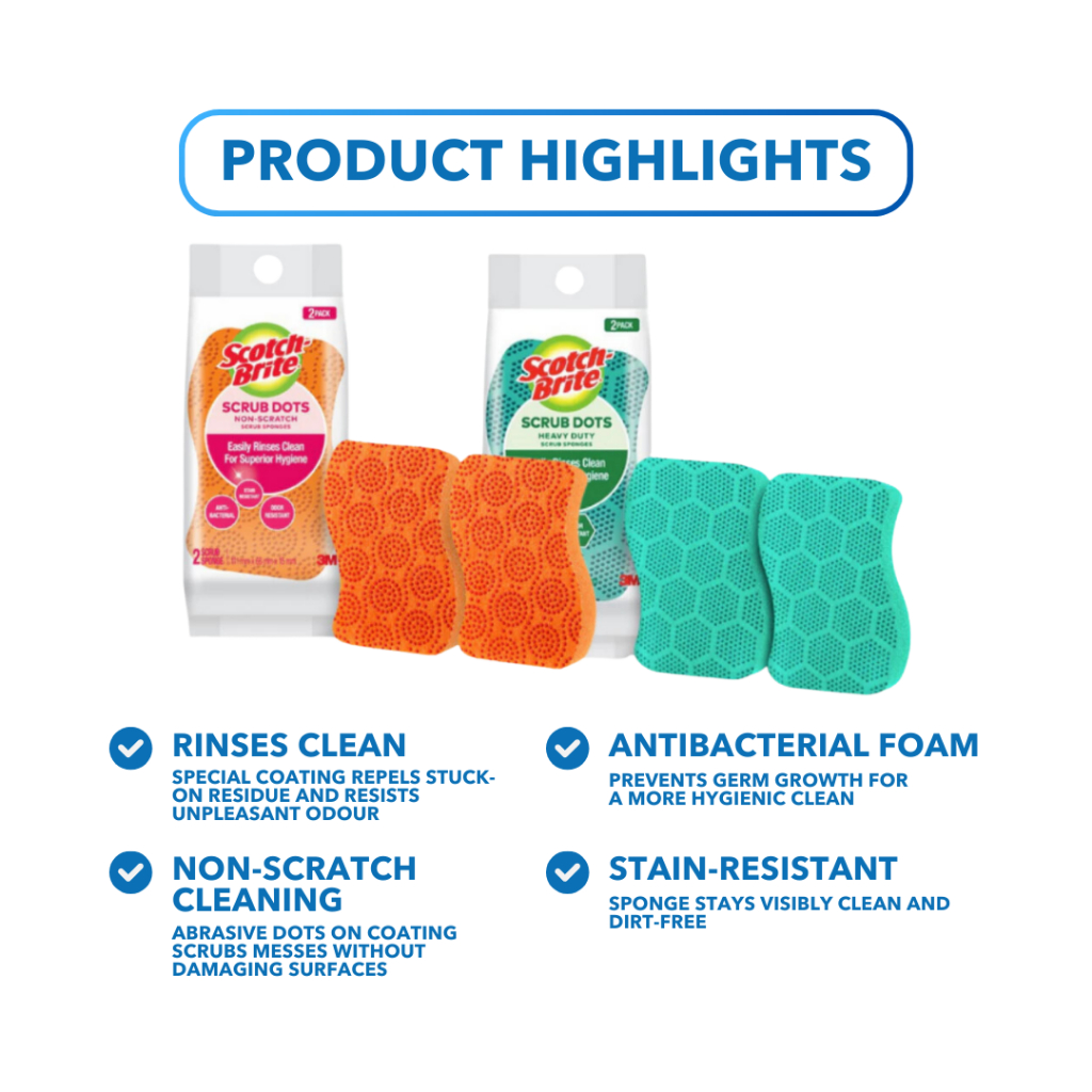 3M Scotch Brite Non-Scratch Sponge - Scrub Dots, Antibacterial, Rinses Clean, Stain Resistant