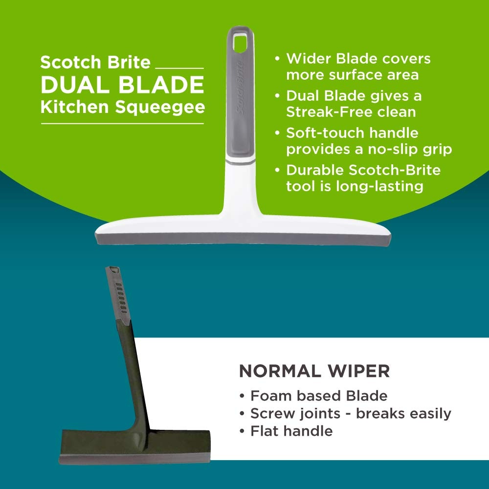 3M Scotch Brite Streak Free Cleaning Dual Blade Squeegee SQP-4 Mirrors Glass Shower Doors Windows Tiles
