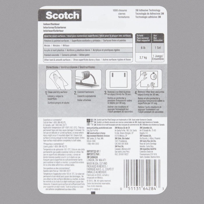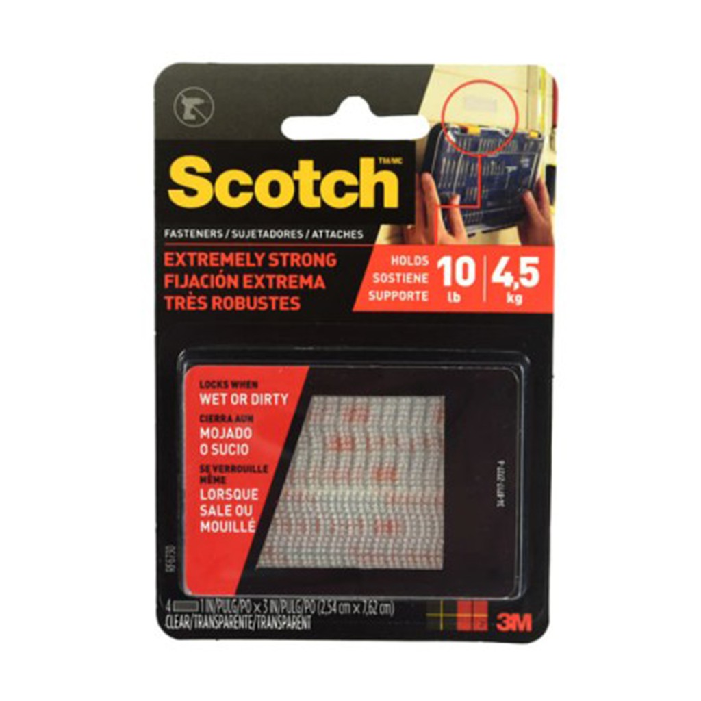 3M Scotch Extreme Fasteners, Clear, 1 in x 3 in (2.54 cm x 7.62 cm) - RF6730
