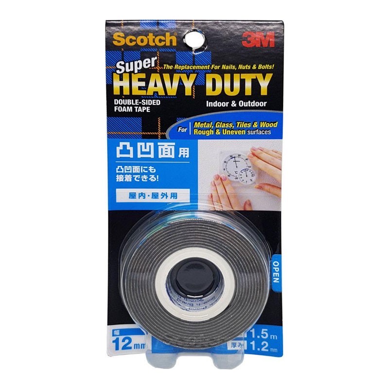 3M Scotch Super Heavy Duty Tape Duty Double Sided Foam Multi Prupose Mounting Tape ,12mmx1.5M - Grey, Indoor, Outdoor
