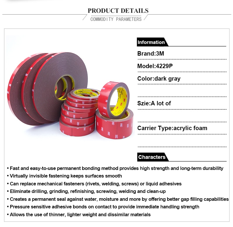 3M double sided acrylic foam acrylic adhesive 3M tape 4229p,Dark Gray, thickness 0.8mm, automotive 3M tape, A lot of Size
