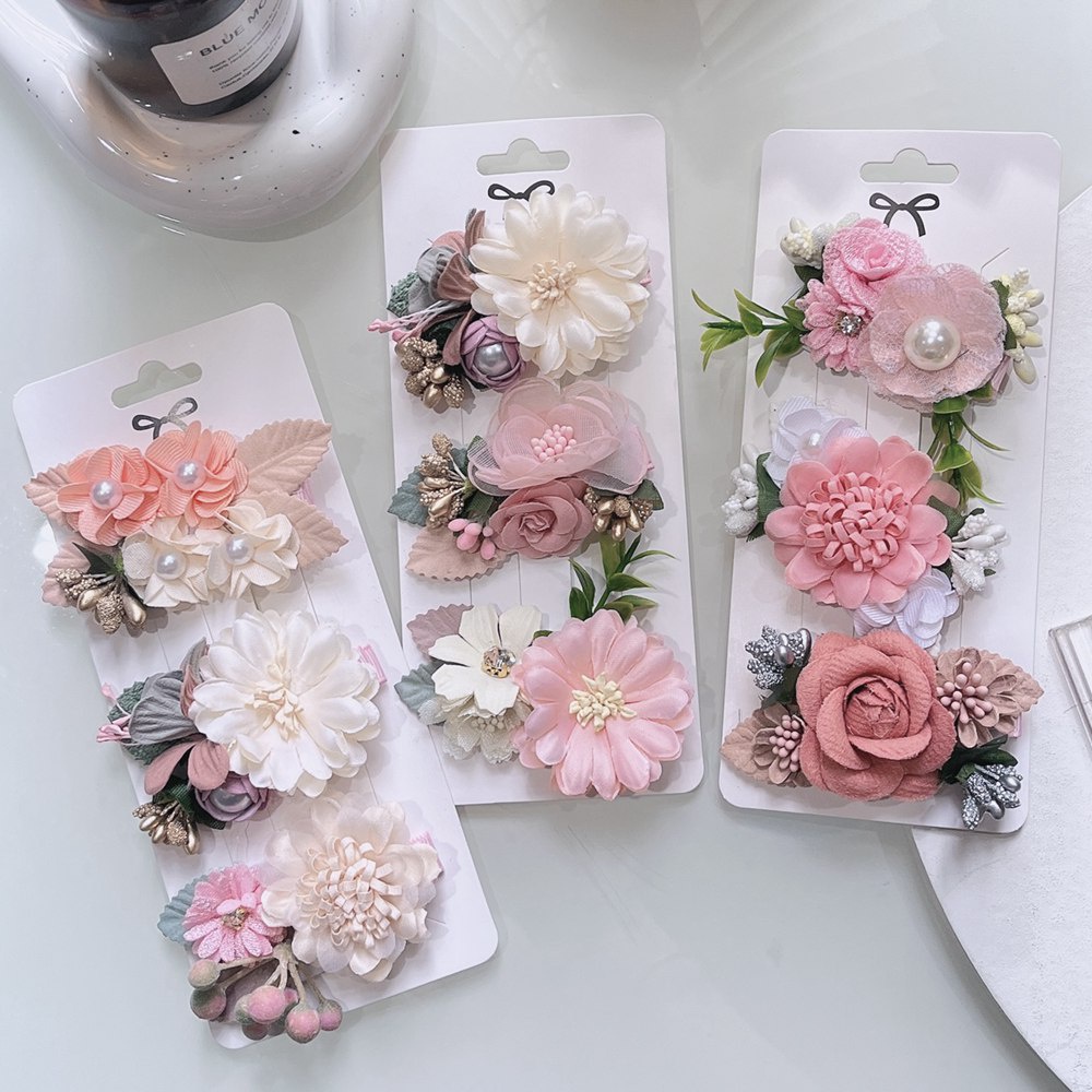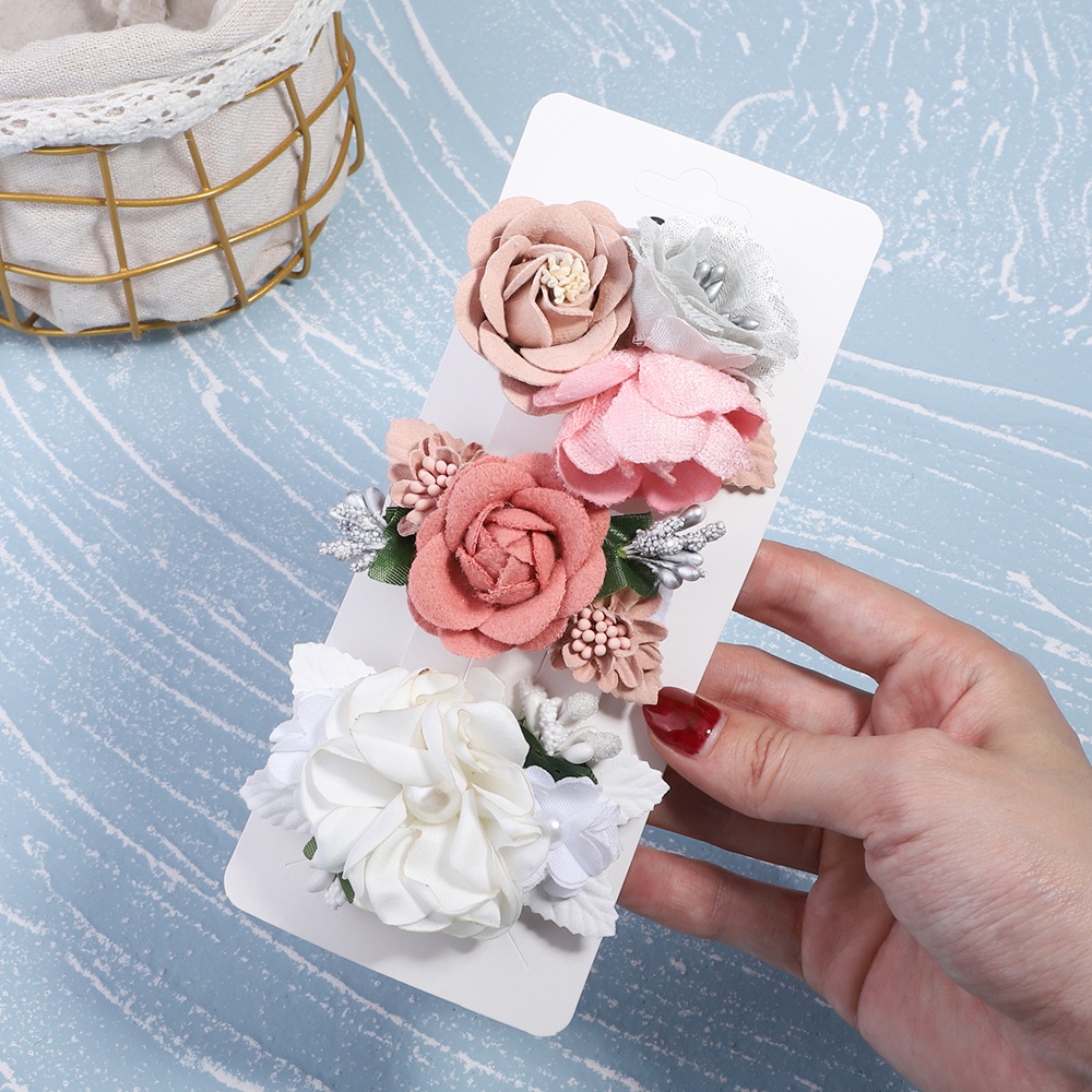 3Pcs/Set Artificial Flower Hair Clip For Kids Girls Hairpins Cute Pink Flowers Barrettes Hair Decorate Headwear Hair Accessories